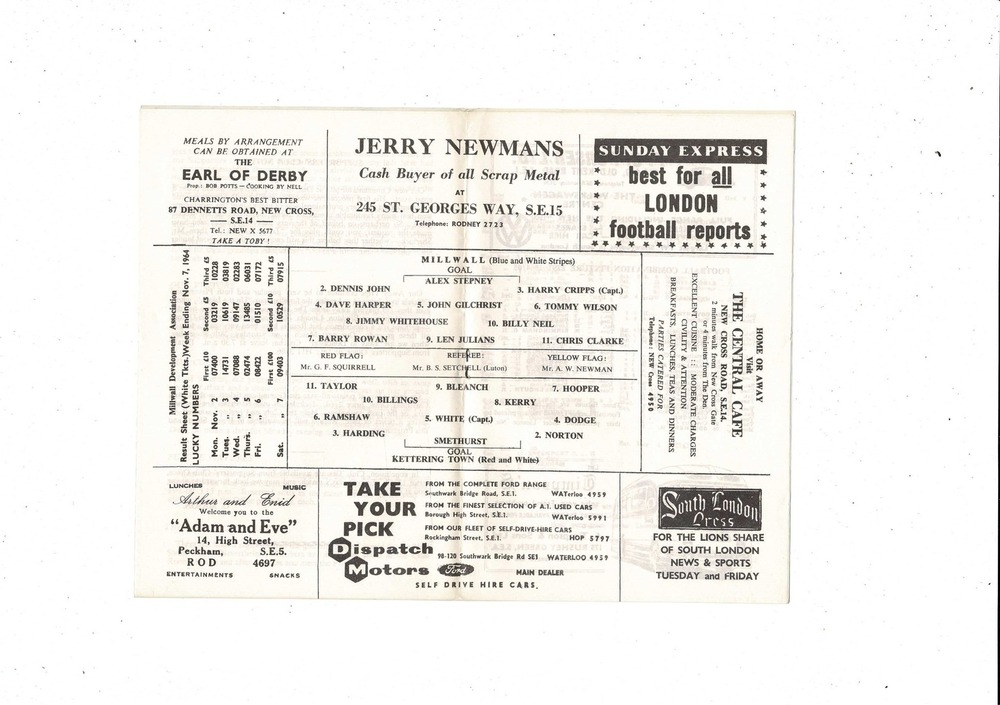 Millwall v Kettering Town FA Cup Football Programme 1964/65