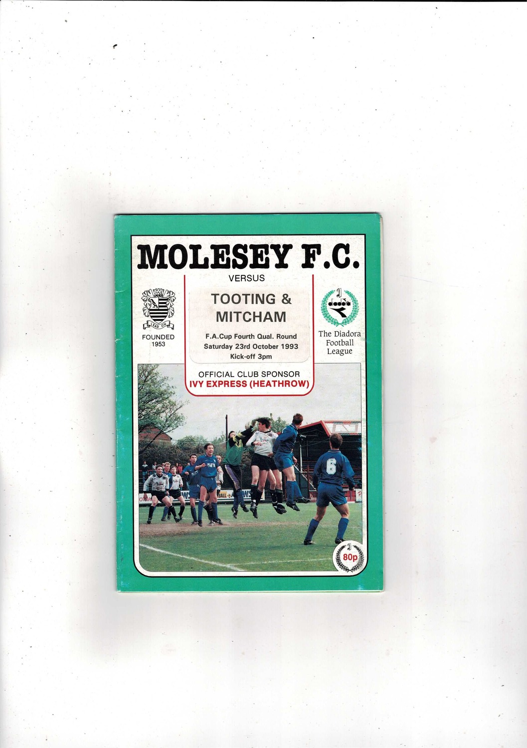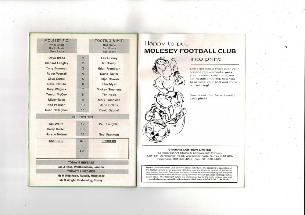 Molesey v Tooting & Mitcham FA Cup Football Programme 1993/94