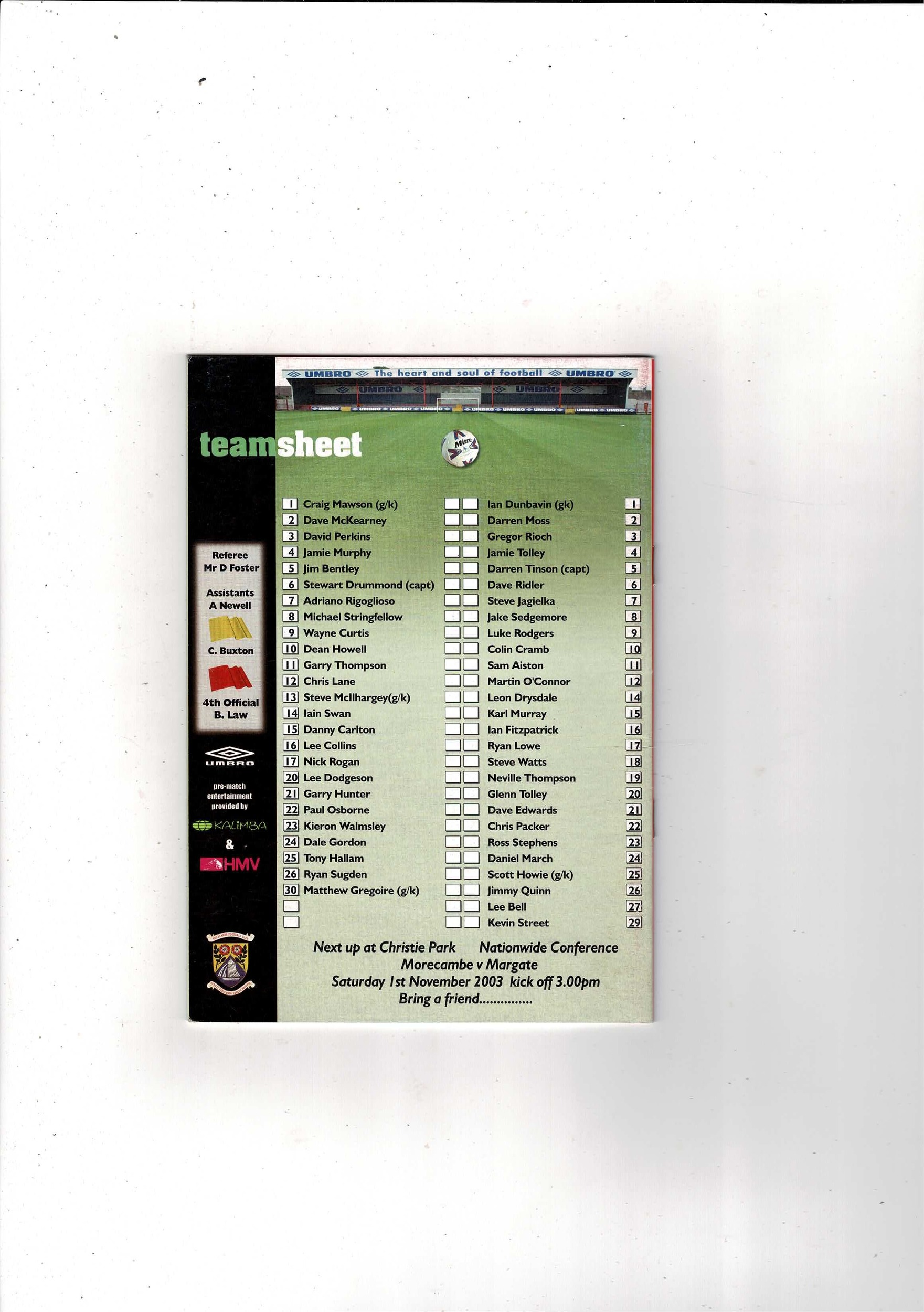 Morecambe v Shrewsbury Town FA Cup Football Programme 2003/04