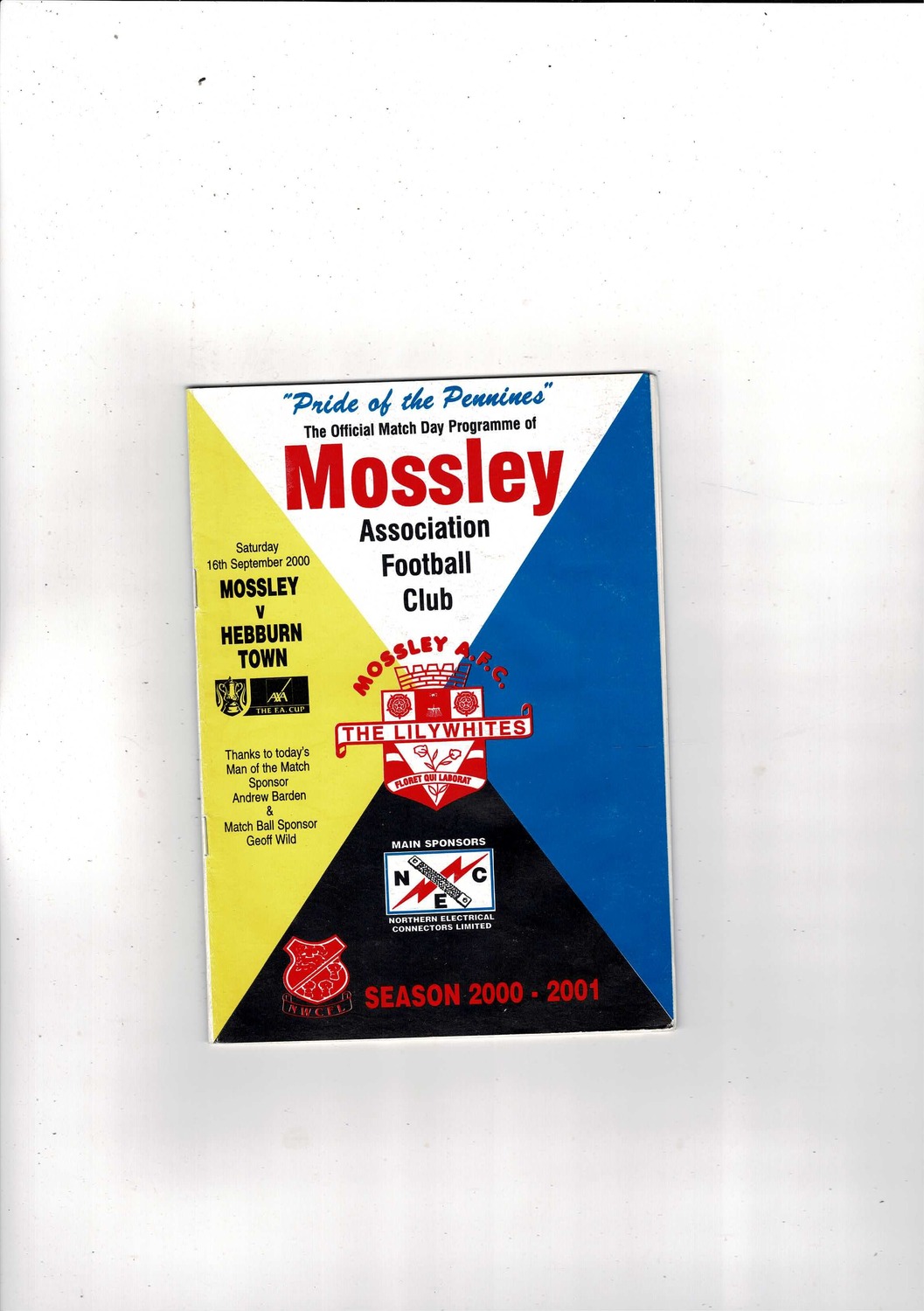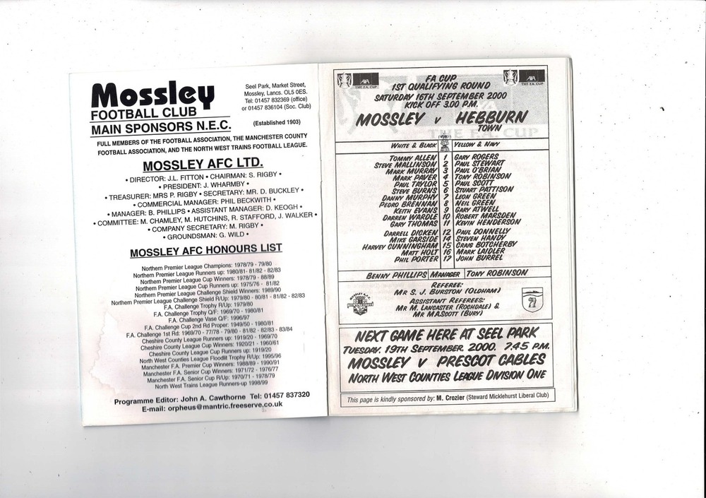 Mossley v Hebburn Town FA Cup Football Programme 2000/01
