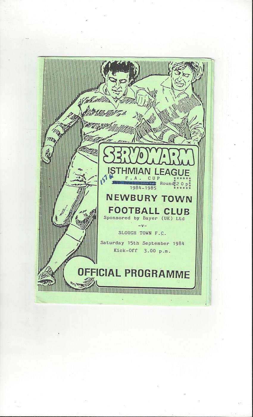 Newbury Town v Slough Town FA Cup Football Programme 1984/85