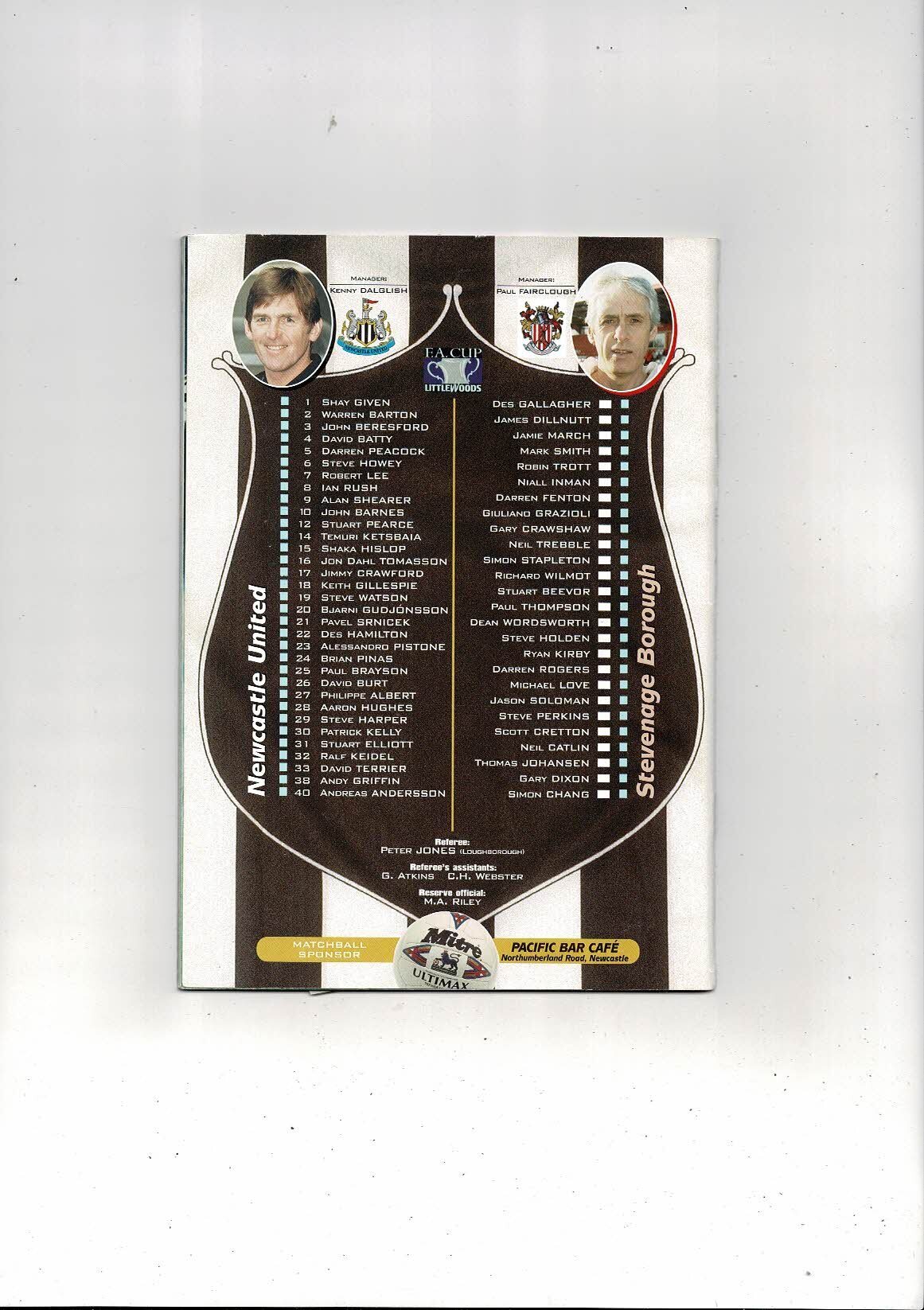 Newcastle United v Stevenage FA Cup Football Programme + Press Cuttings 1997/98