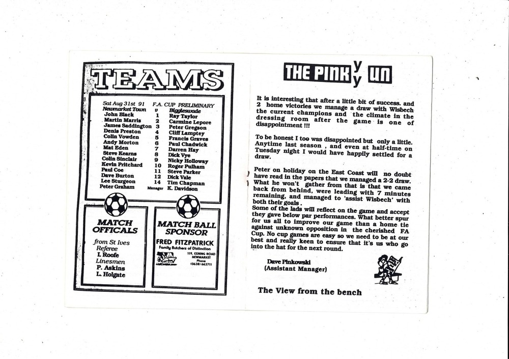 Newmarket Town v Biggleswade FA Cup Football Programme 1991/92