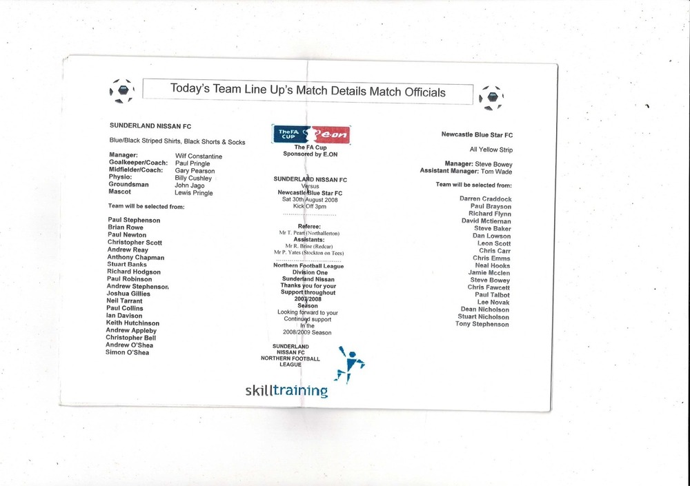 Nissan Sunderland v Newcastle Blue Star FA Cup Football Programme 2008/09