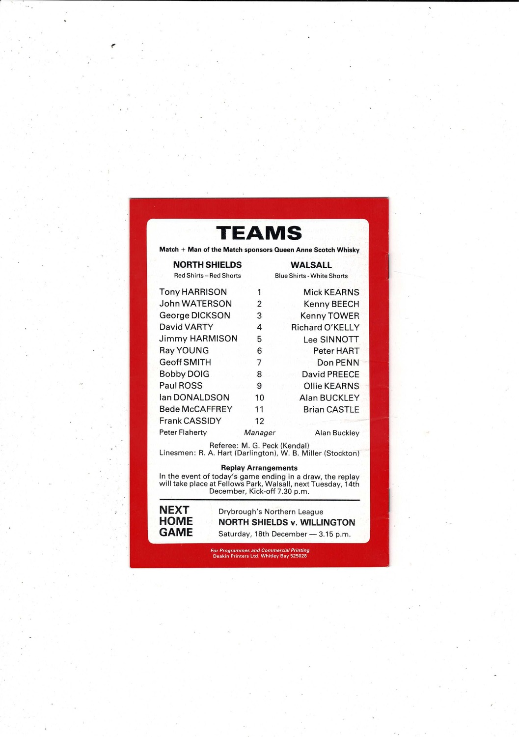 North Shields v Walsall FA Cup Football Programme 1982/83