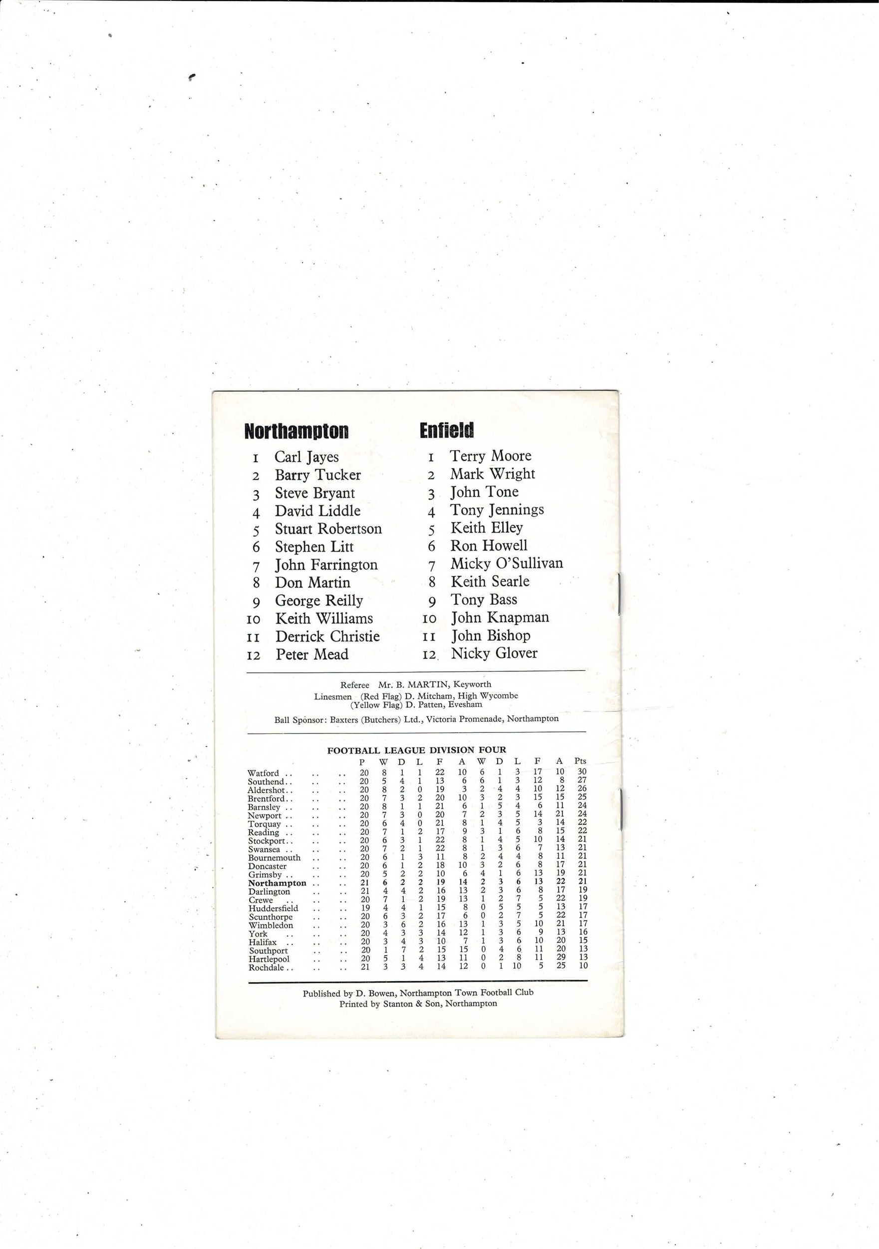 Northampton Town v Enfield FA Cup Football Programme 1977/78