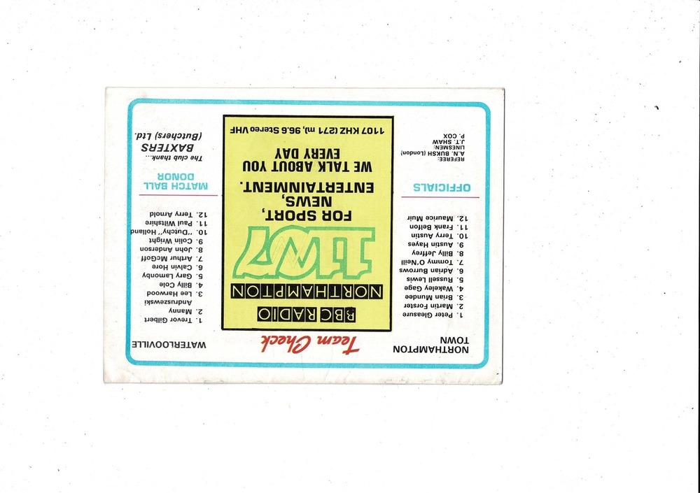 Northampton Town v Waterlooville FA Cup Replay Football Programme 1983/84