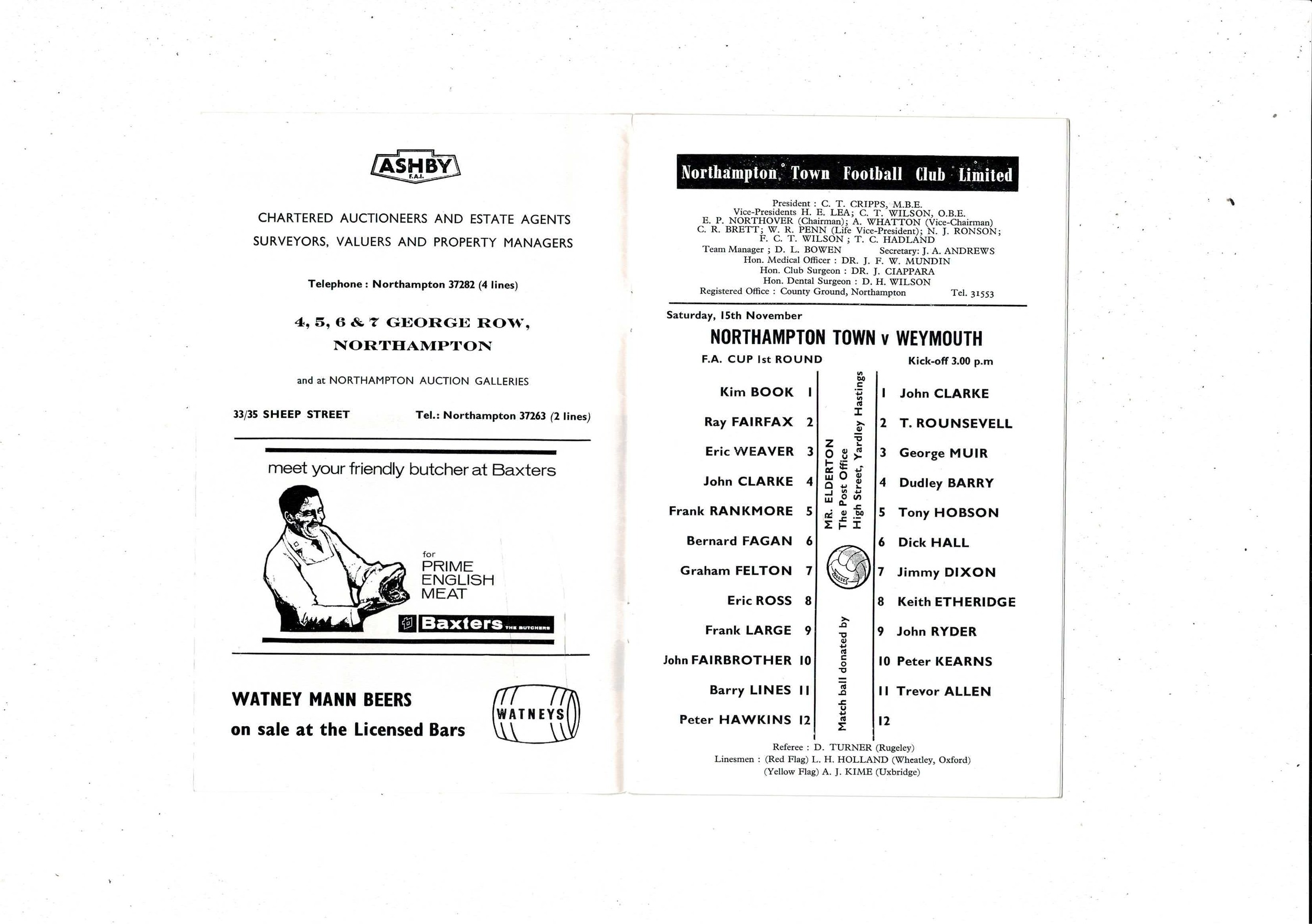 Northampton Town v Weymouth FA Cup Football Programme 1969/70