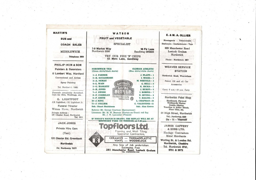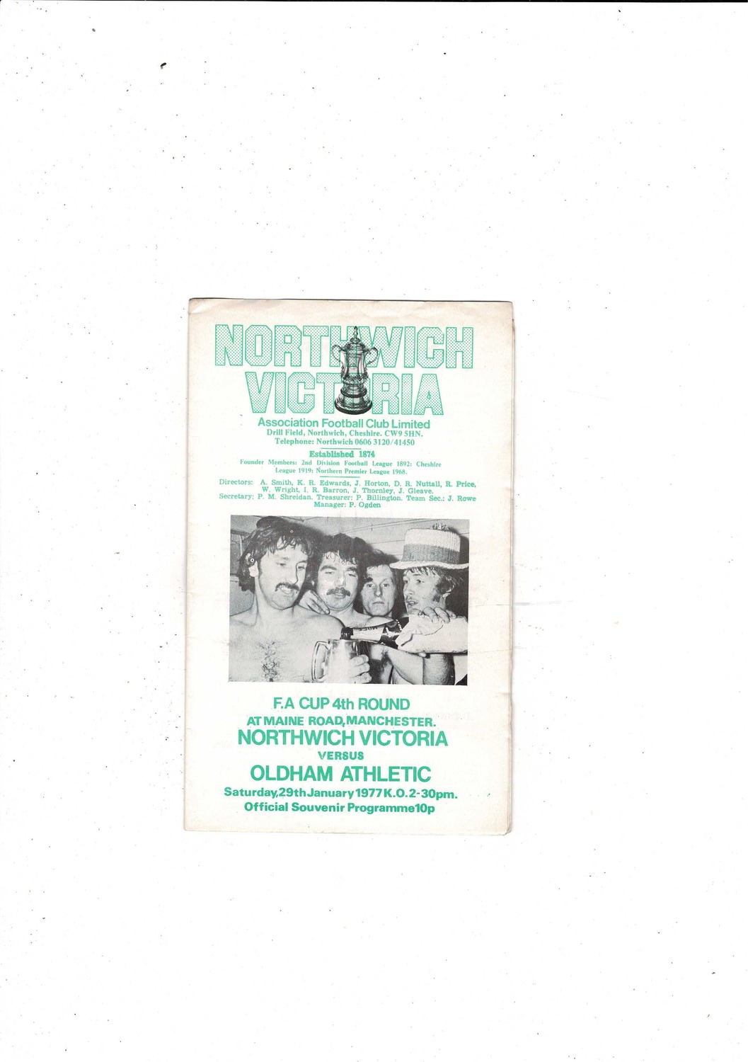 Northwich Victoria v Oldham Athletic FA Cup Football Programme 1976/77