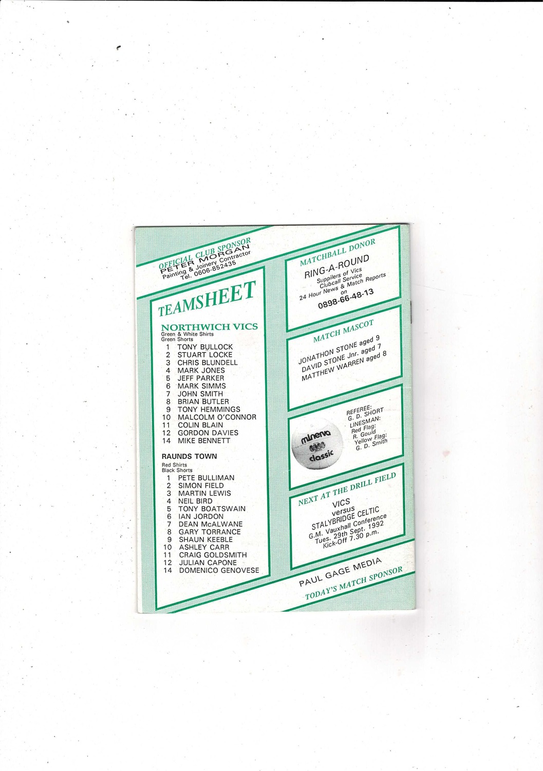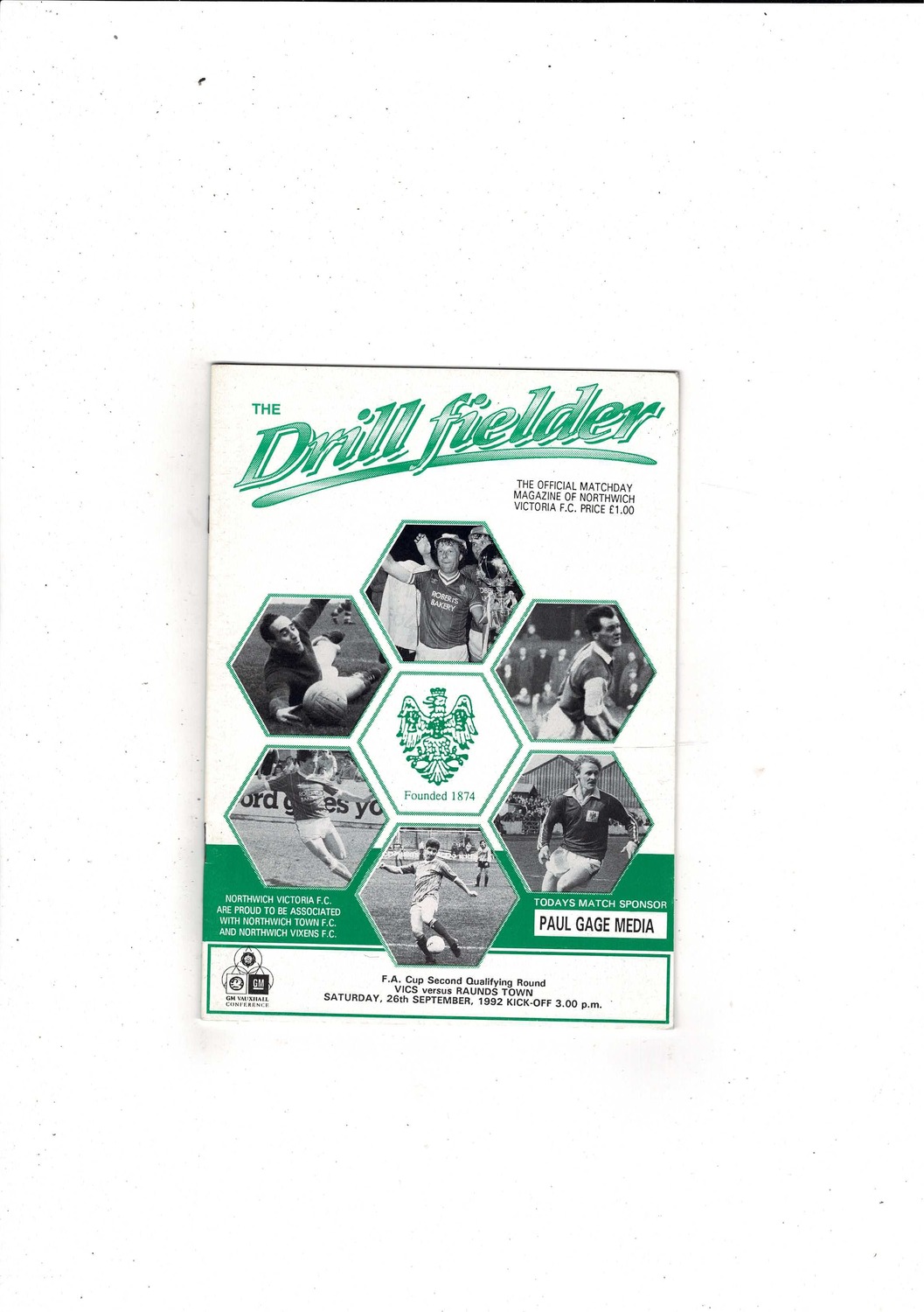 Northwich Victoria v Raunds Town FA Cup Football Programme 1992/93