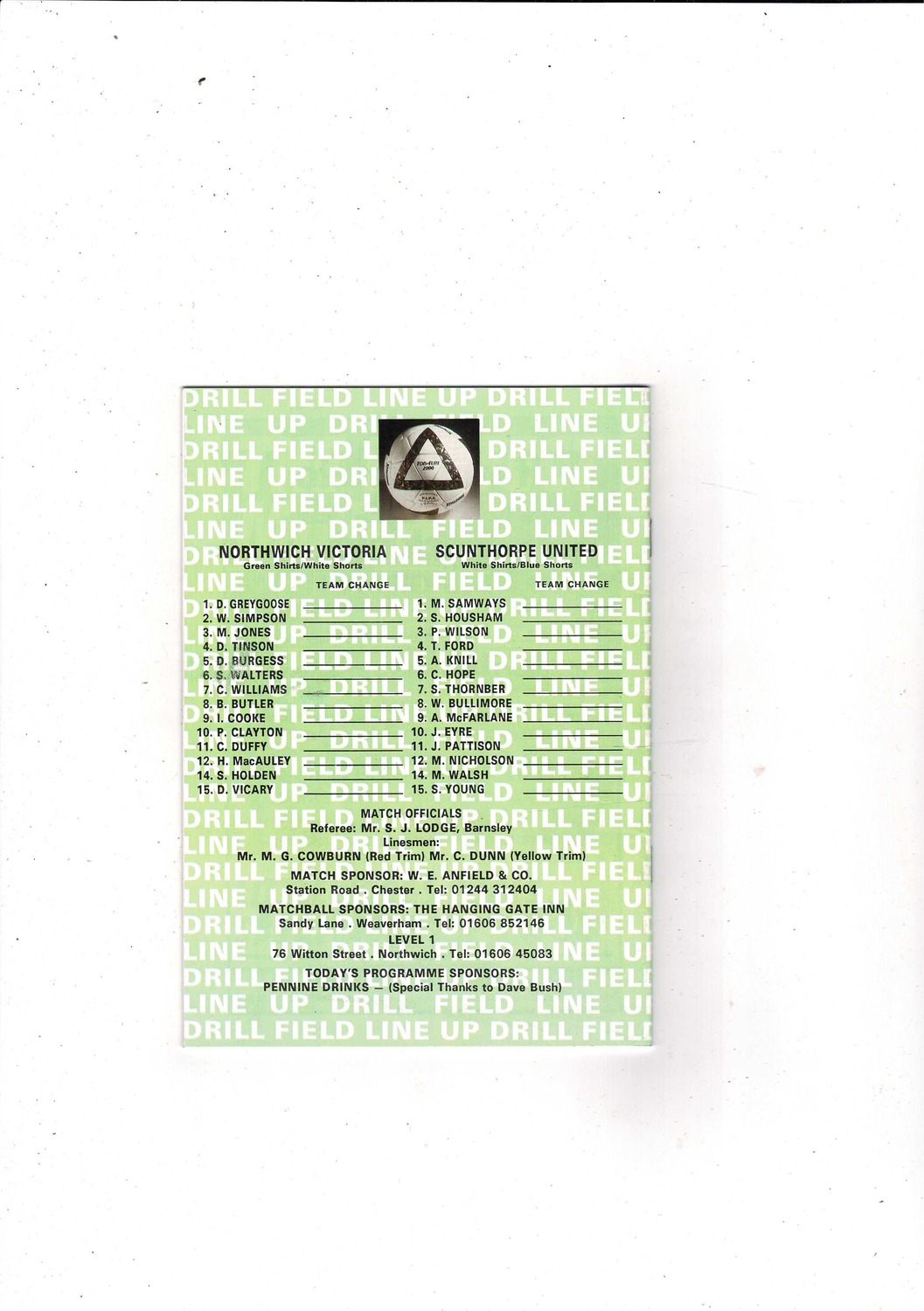 Northwich Victoria v Scunthorpe United FA Cup Football Programme 1995/96
