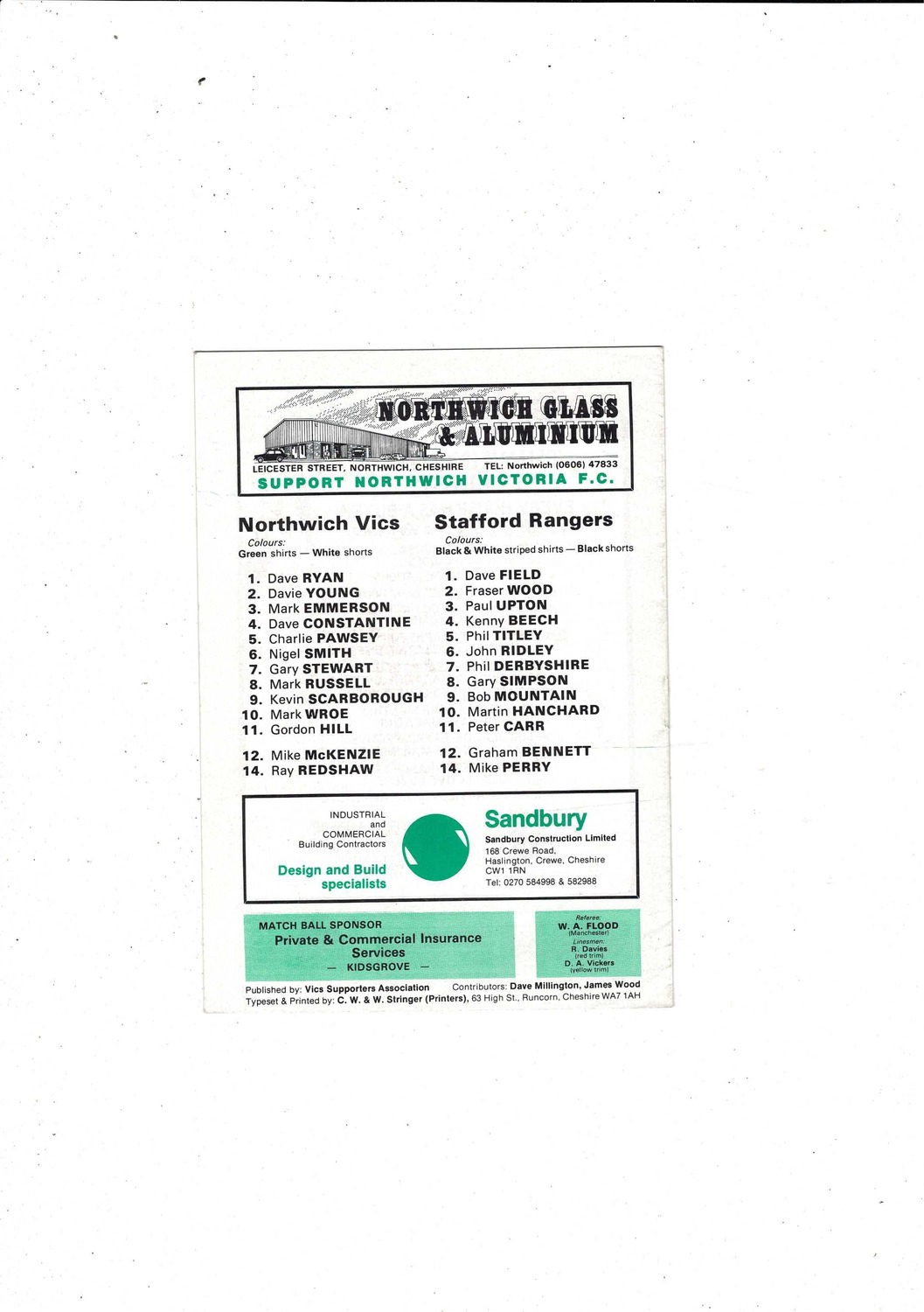 Northwich Victoria v Stafford Rangers FA Cup Football Programme 1986/87