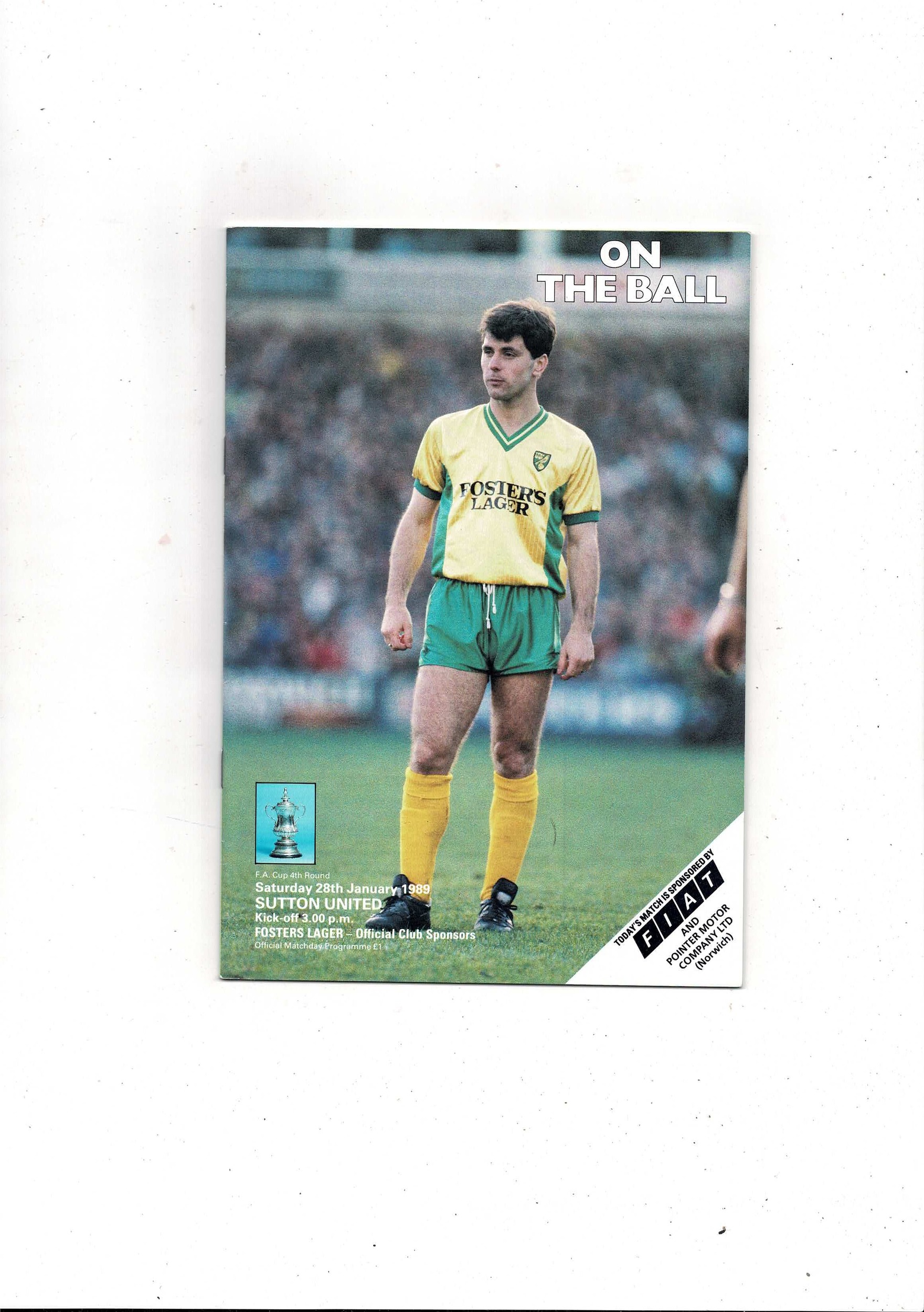 Norwich City v Sutton United FA Cup Football Programme 1988/89