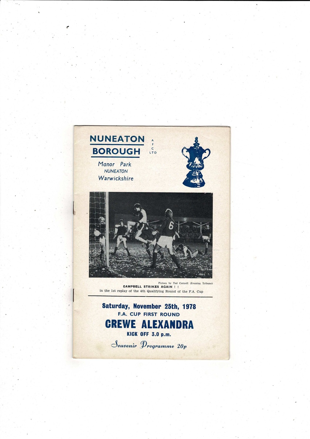 Nuneaton Borough v Crewe Alexandra FA Cup Football Programme 1978/79