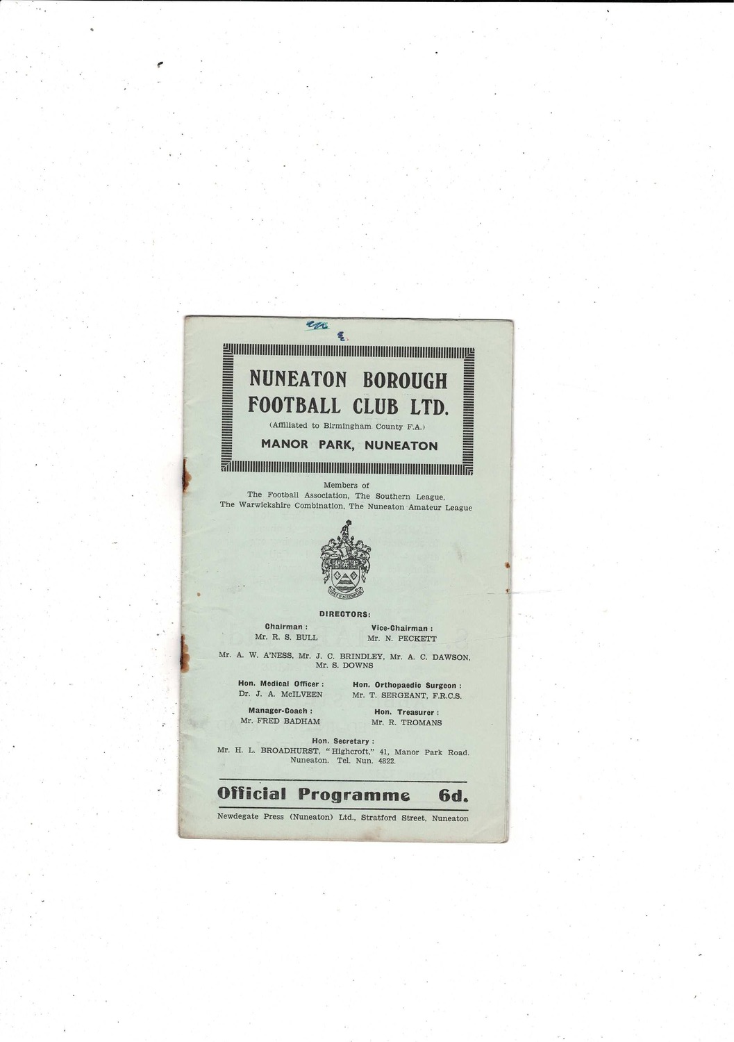 This Original Football Programme is creased with some staining, rusty staples & ink marks on front. No handwriting. Please see scans.