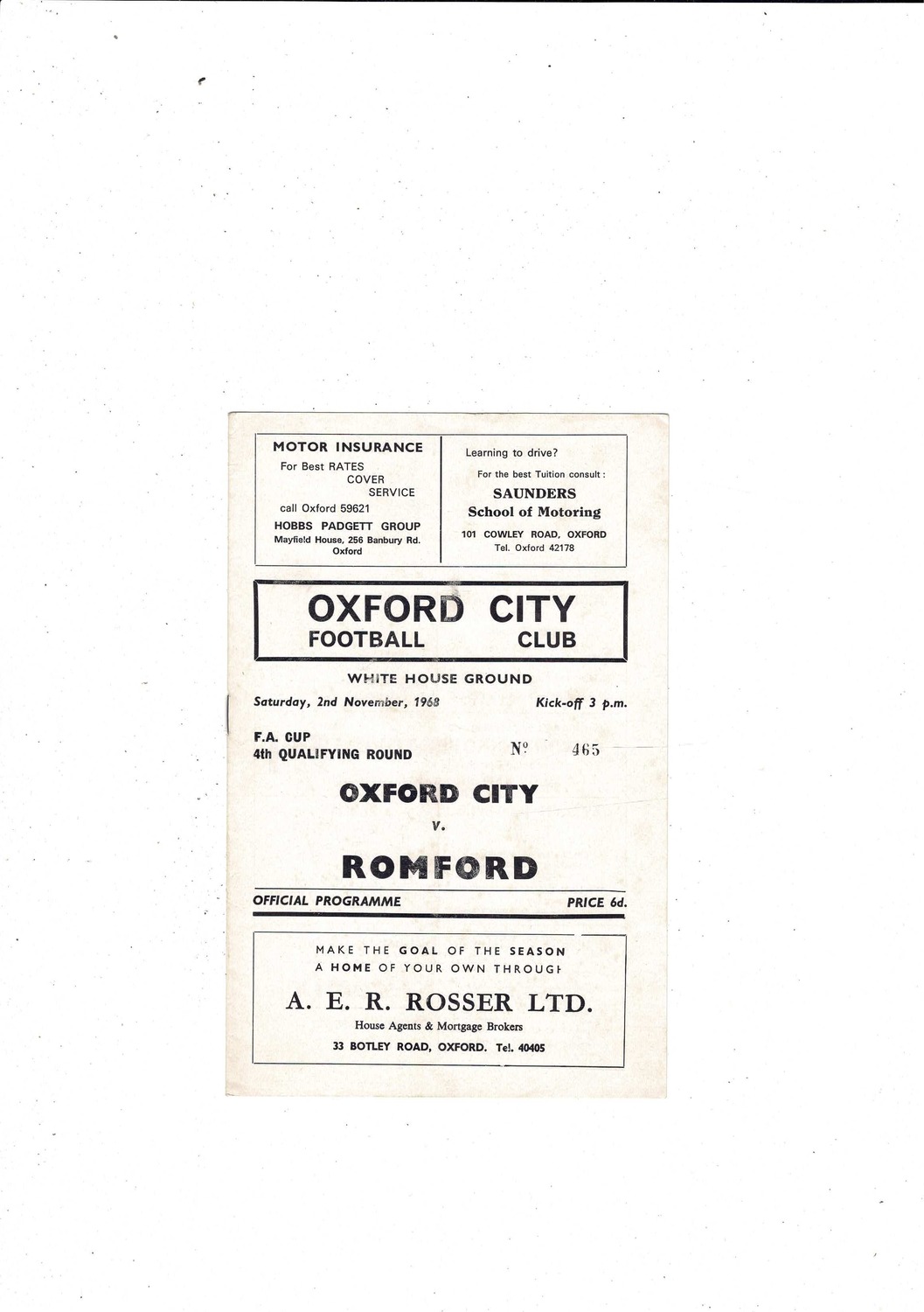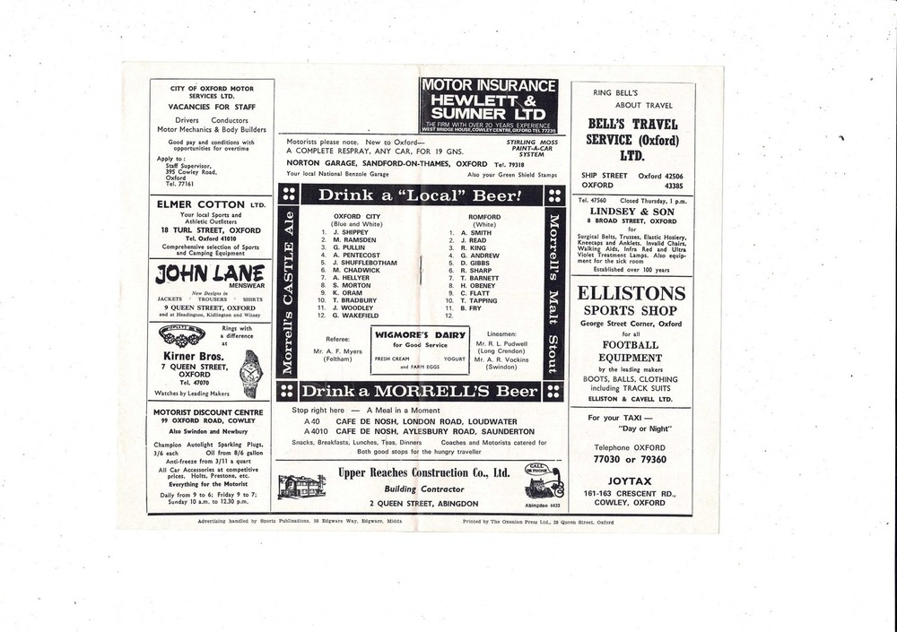 Oxford City v Romford FA Cup Football Programme 1968/69