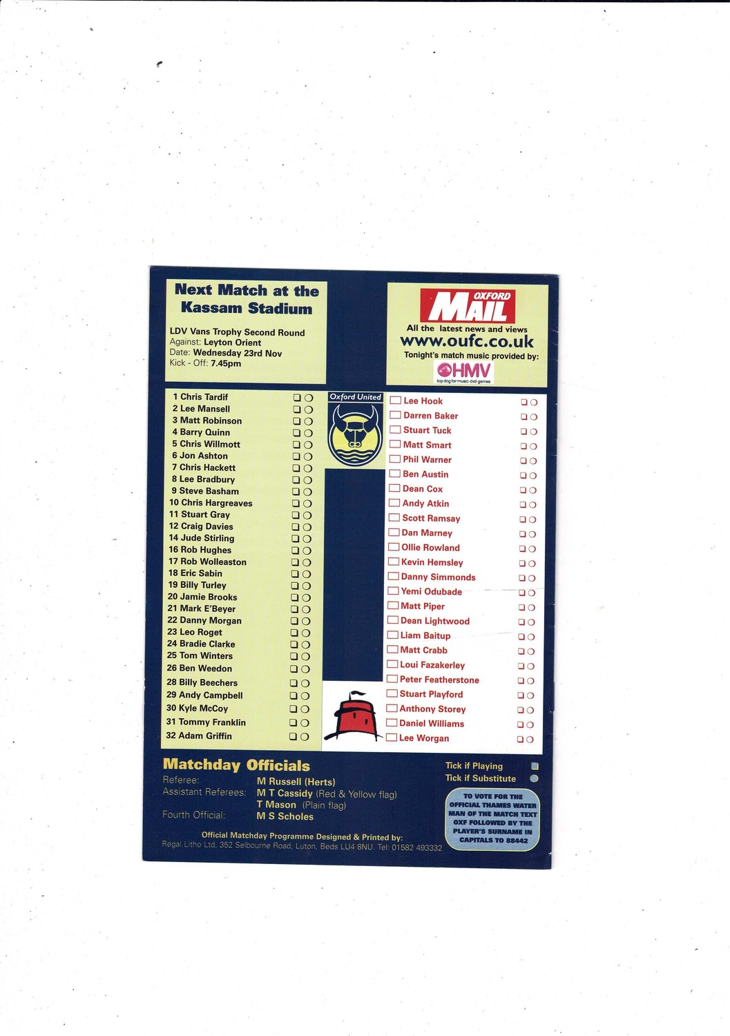 Oxford United v Eastbourne Borough Replay FA Cup Football Programme 2005/06