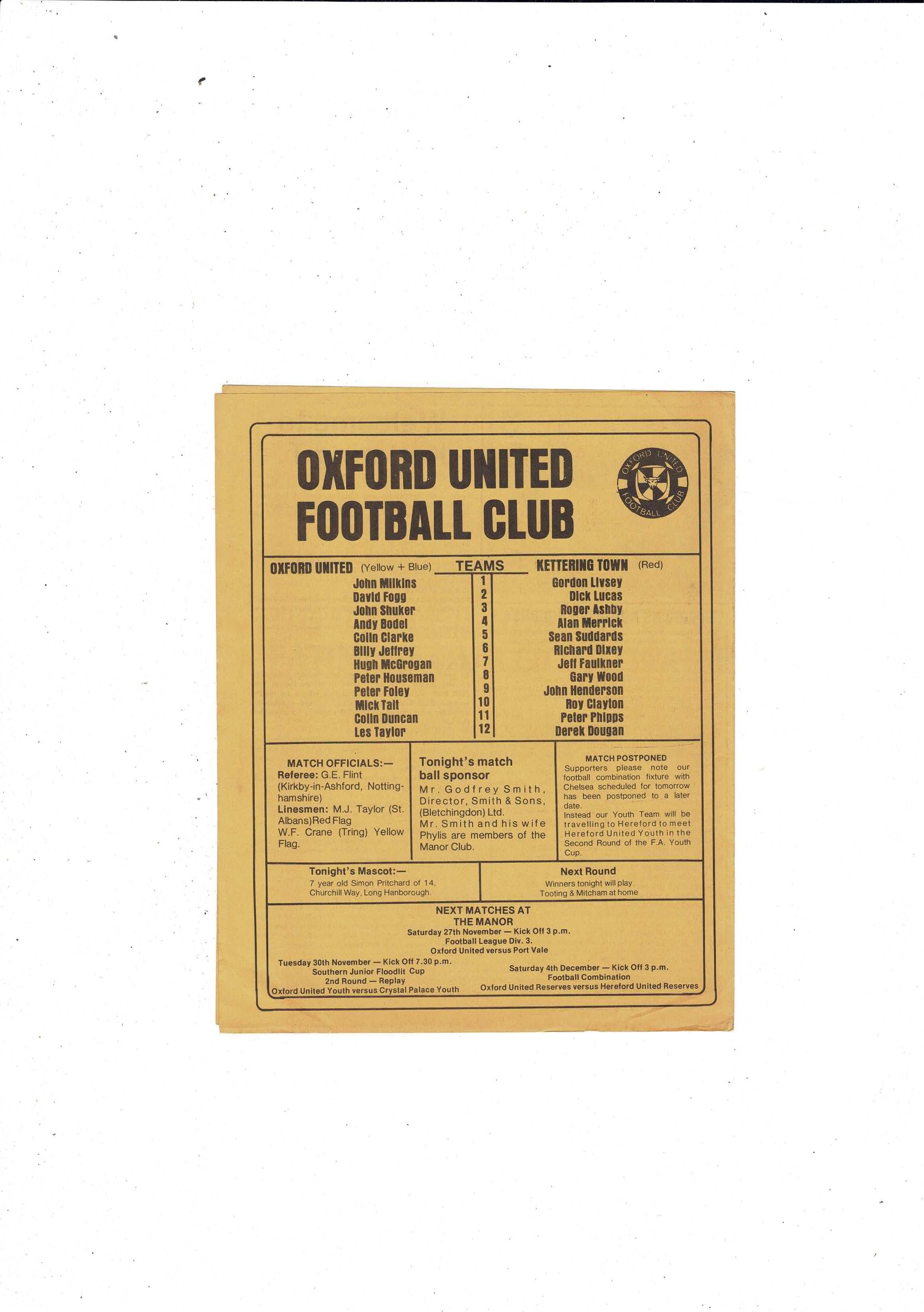 Oxford United v Kettering FA Cup Replay Football Programme 1976/77