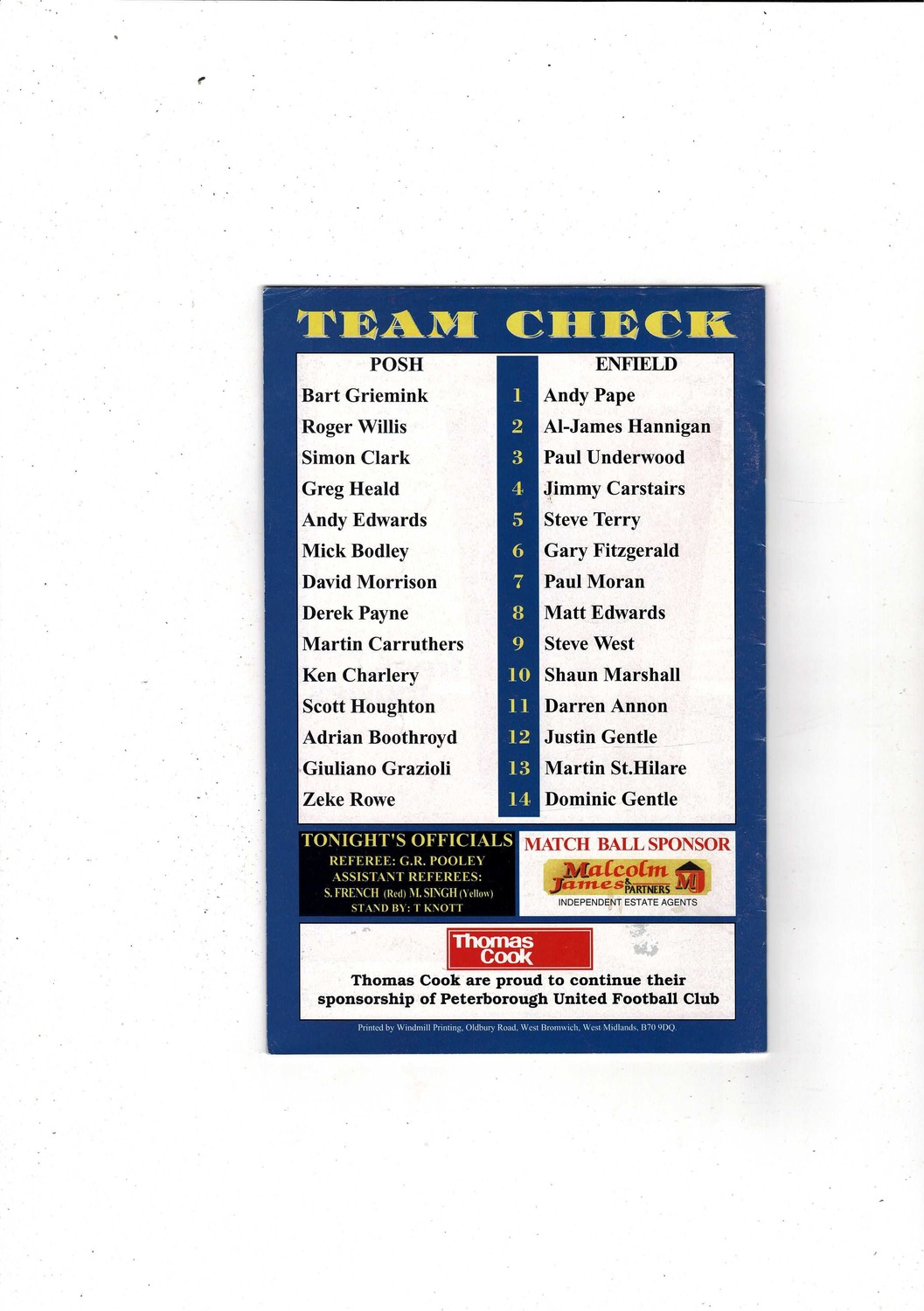 Peterborough United v Enfield FA Cup Football Programme 1996/97
