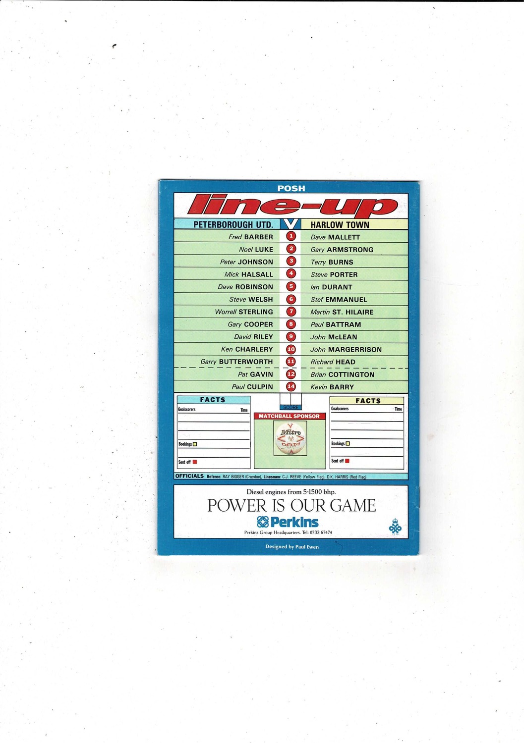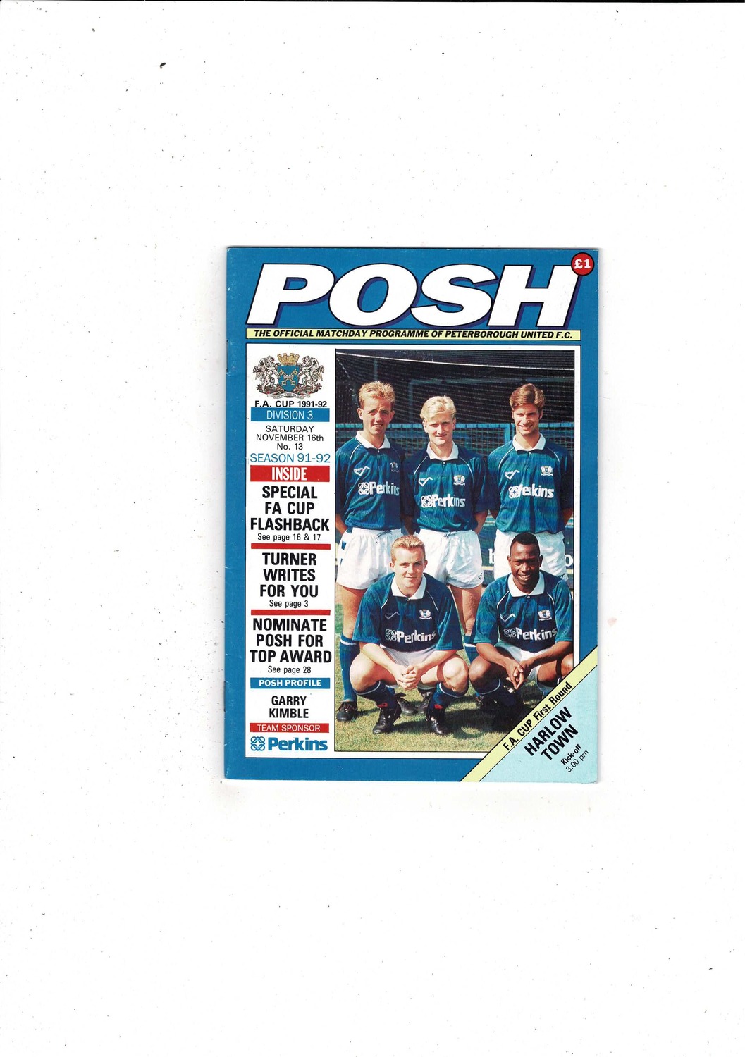 Peterborough United v Harlow Town FA Cup Football Programme 1991/92