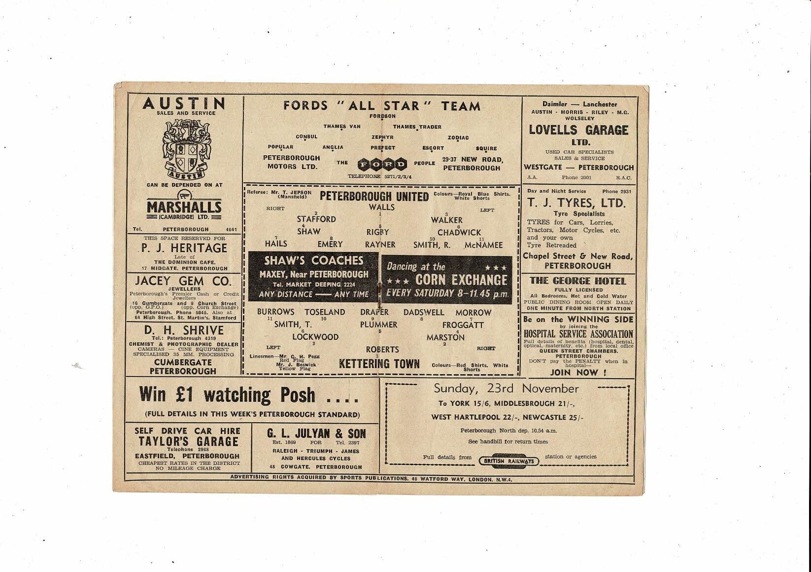 Peterborough United v Kettering Town FA Cup Football Programme 1958/59