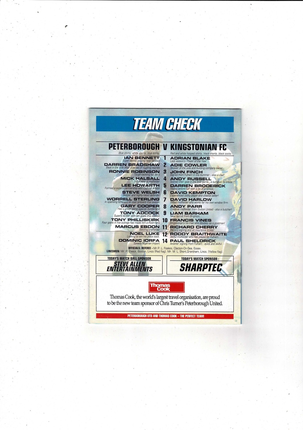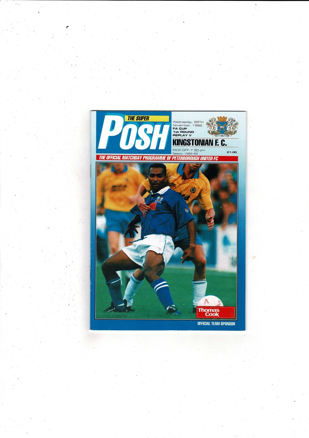 Peterborough United v Kingstonian FA Cup Football Programme 1992/93