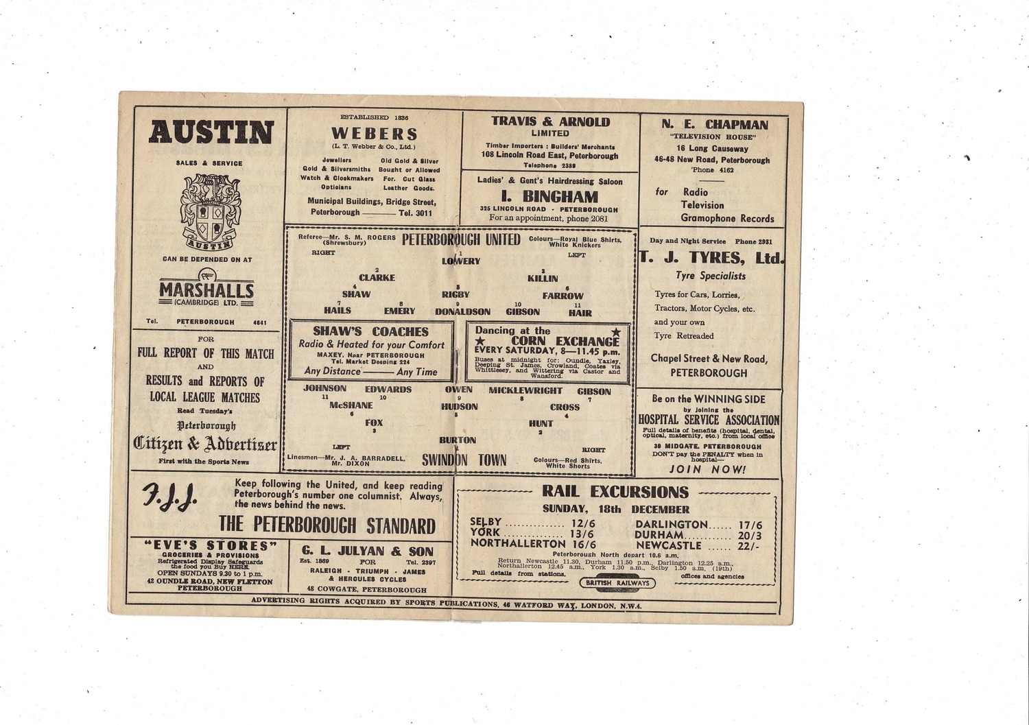 Peterborough United v Swindon Town FA Cup Replay Football Programme 1955/56