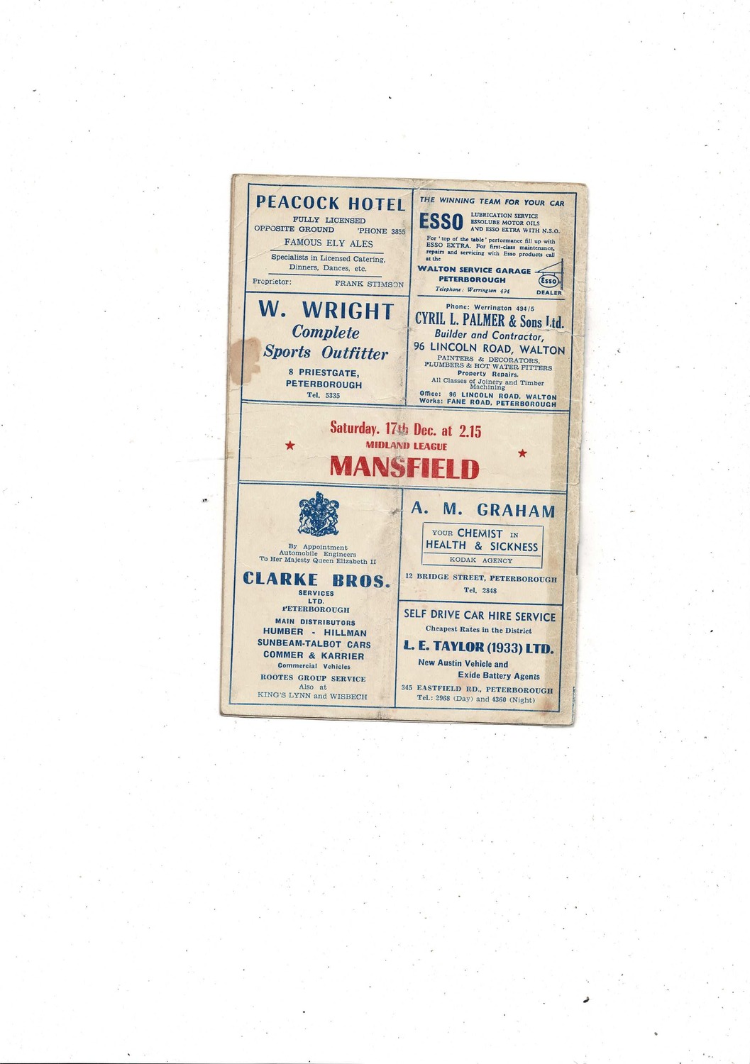 This Original Football Programme is creased also has a fold with several tears, taped edge & some staining. No handwriting. Please see scans.