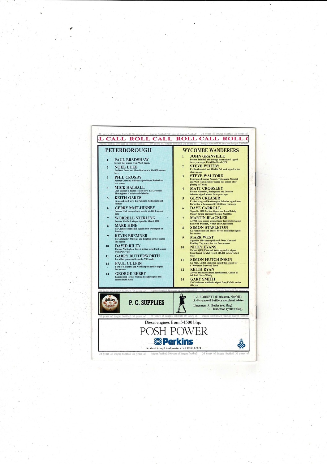 Peterborough United v Wycombe Wanderers FA Cup Replay 1990/91