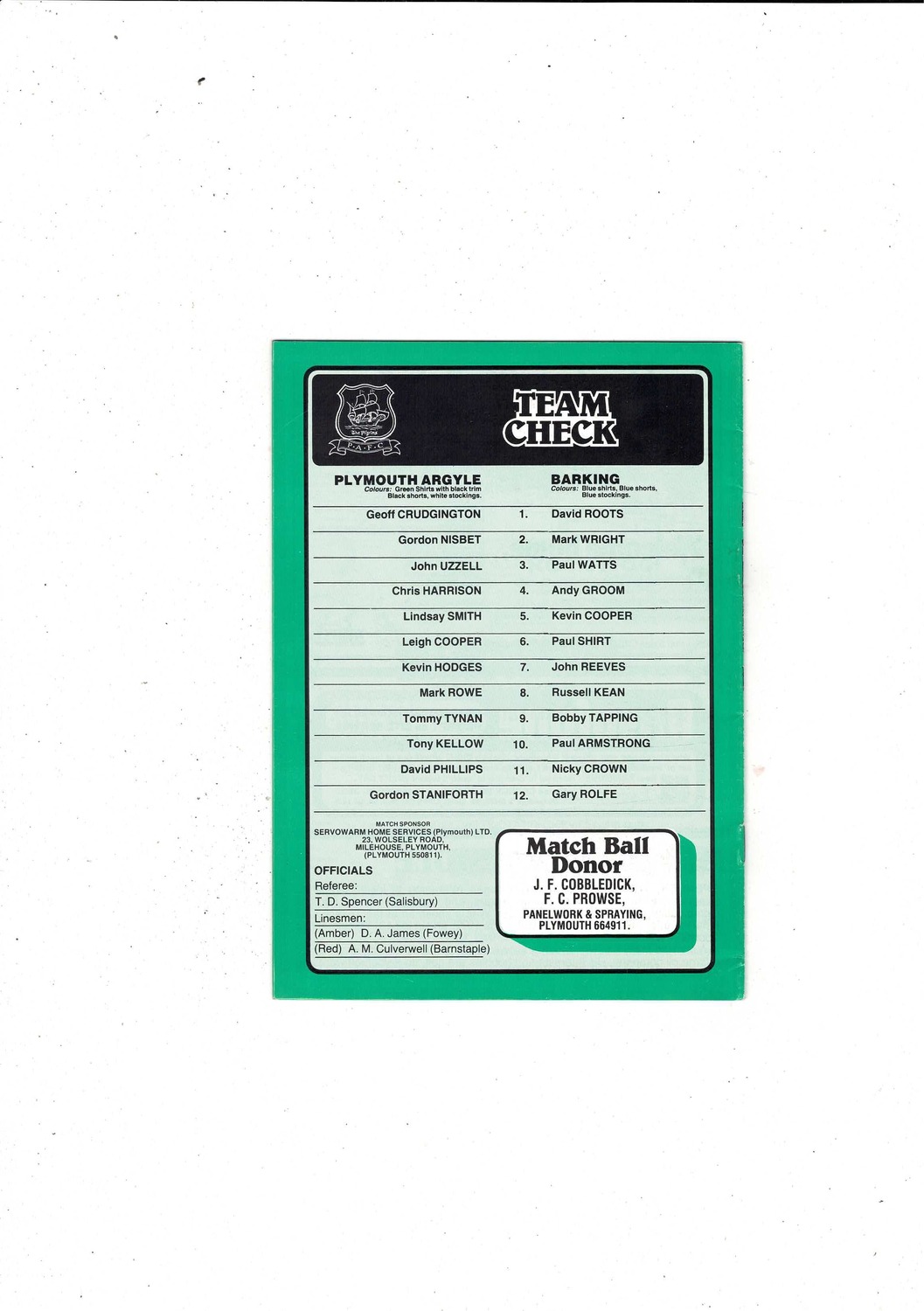 Plymouth Argyle v Barking FA Cup Football Programme 1983/84