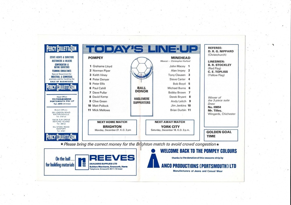 Portsmouth v Minehead FA Cup Football Programme 1976/77