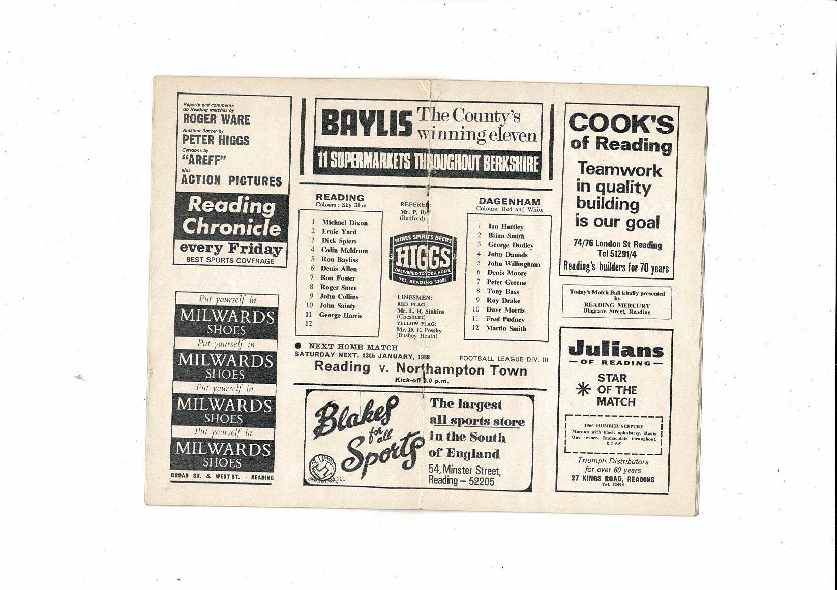 Reading v Dagenham FA Cup Football Programme 1967/68 + League Review