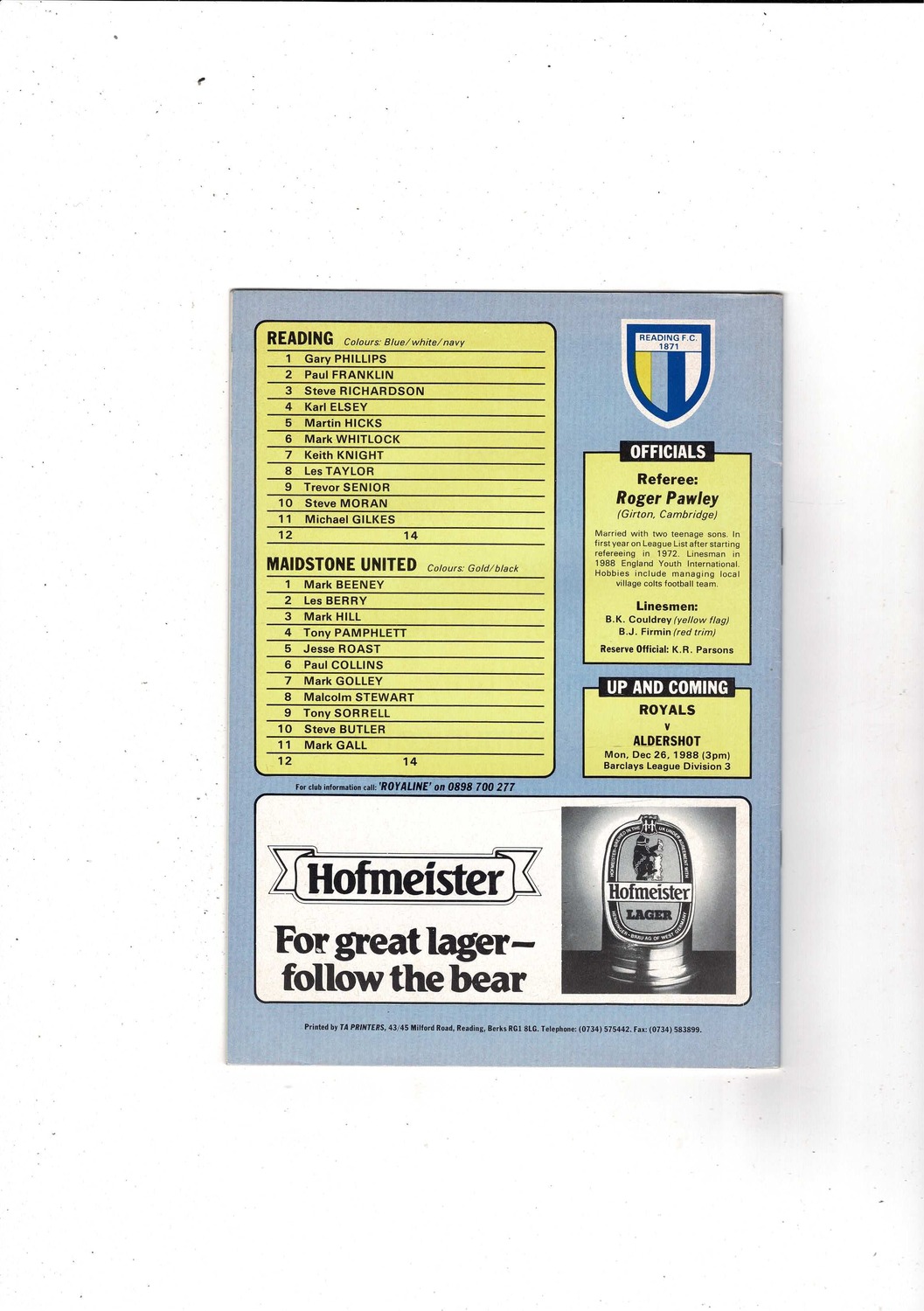 Reading v Maidstone United FA Cup Football Programme 1988/89