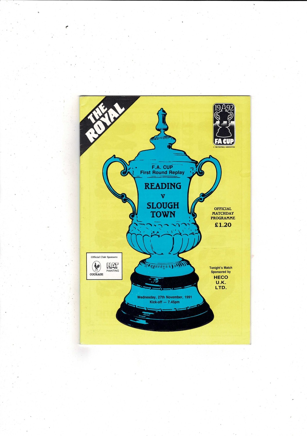 Reading v Slough Town 1st Round Replay FA Cup Football Programme 1991/92
