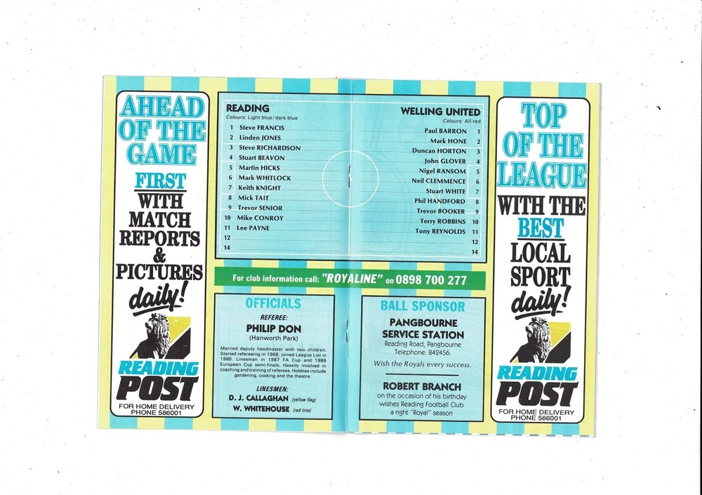 Reading v Welling United FA Cup Football Programme 1989/90