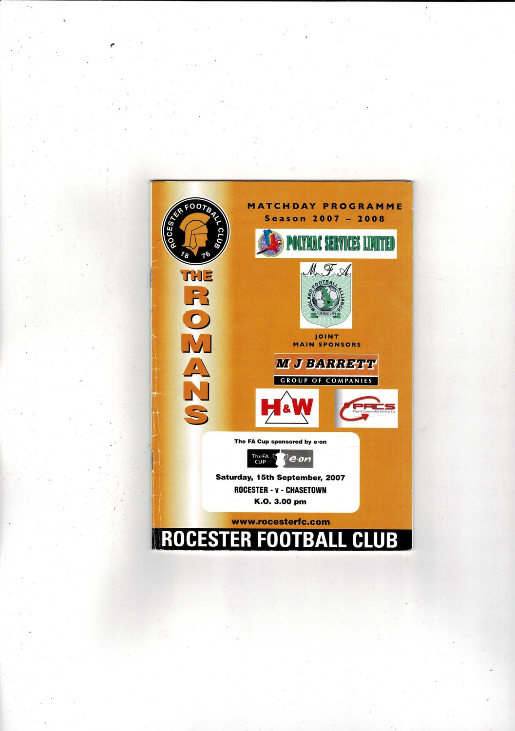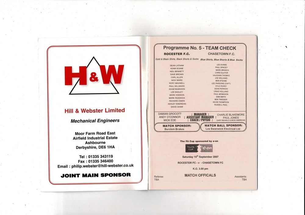 Rochester v Chasetown FA Cup Football Programme 2007/08