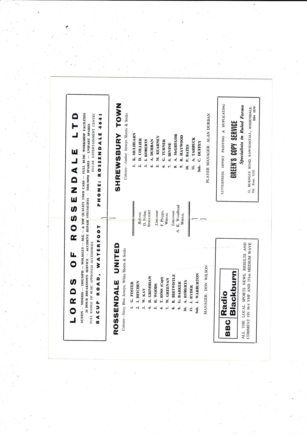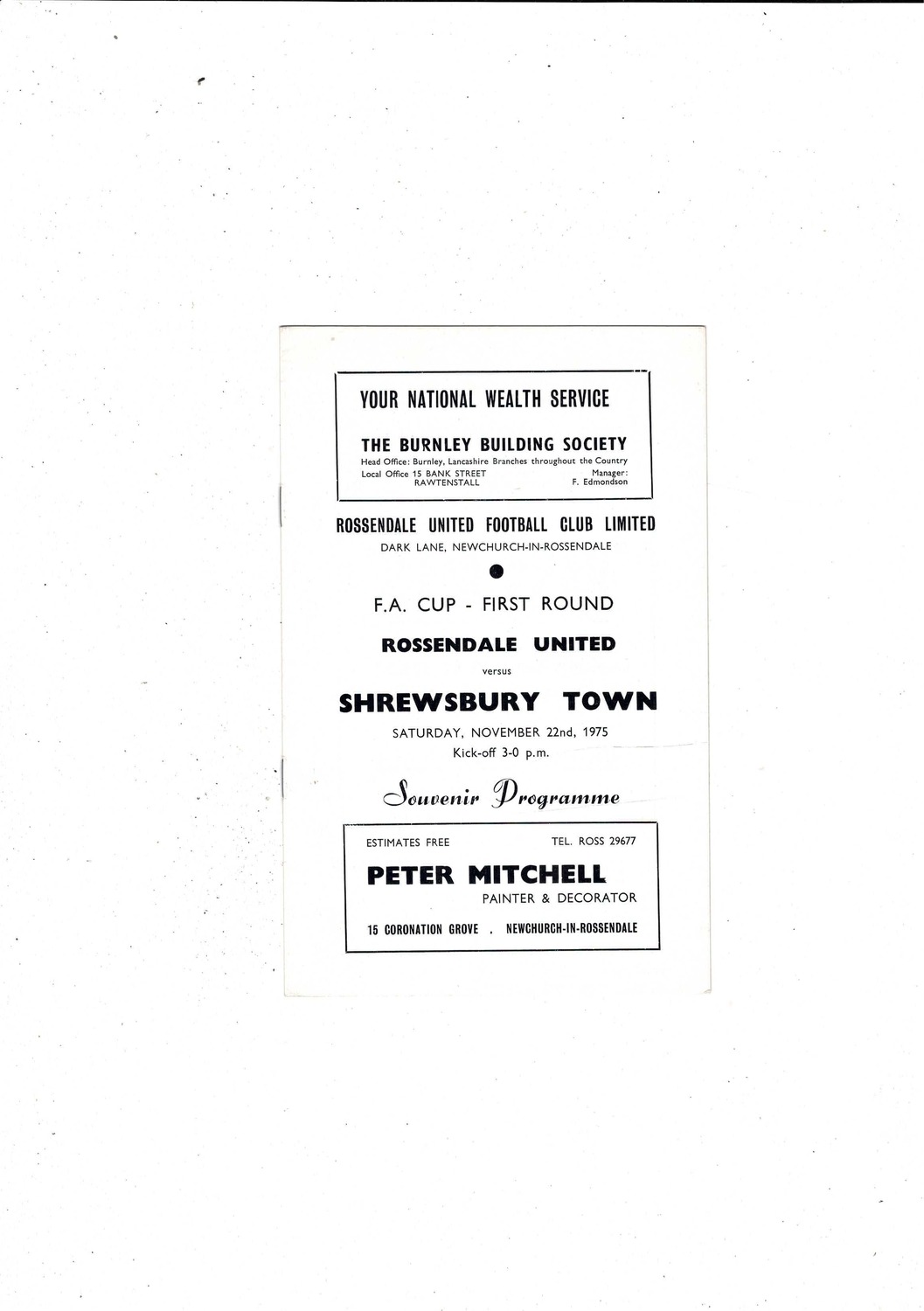 Rossendale United v Shrewsbury Town FA Cup Football Programme 1975/76