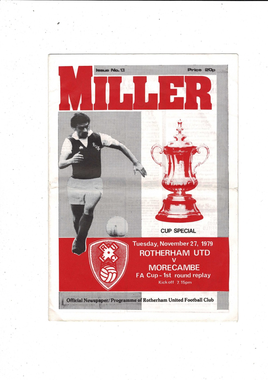 Rotherham v Morecombe 1st Round Replay FA Cup Football Programme 1979/80