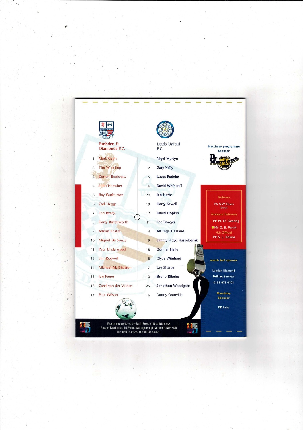 Rushden & Diamonds v Leeds United FA Cup Football Programme 1998/99