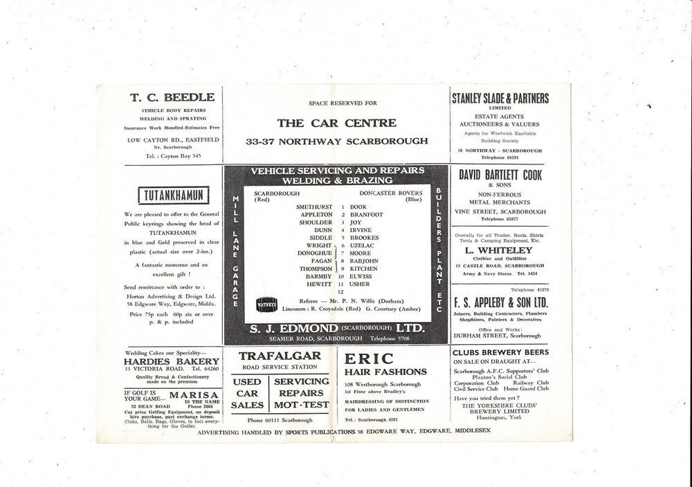 Scarborough v Doncaster Rovers FA Cup Football Programme 1972/73
