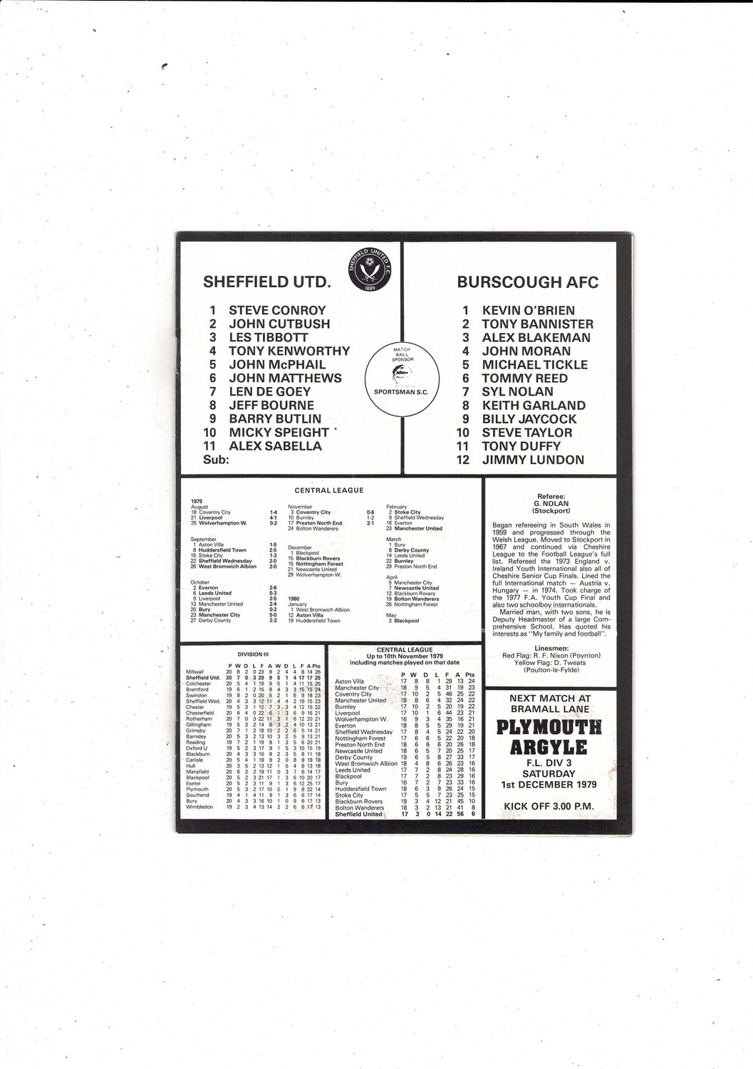 Sheffield United v Burscough FA Cup Football Programme 1979/80