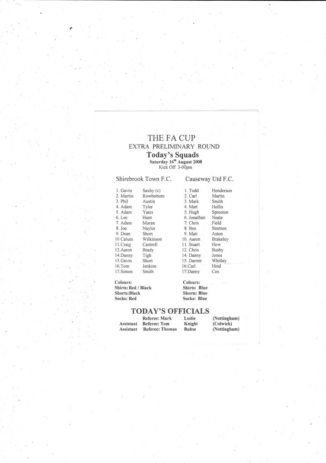 Shirebrook Town v Causeway United FA Cup Football Programme 2008/09