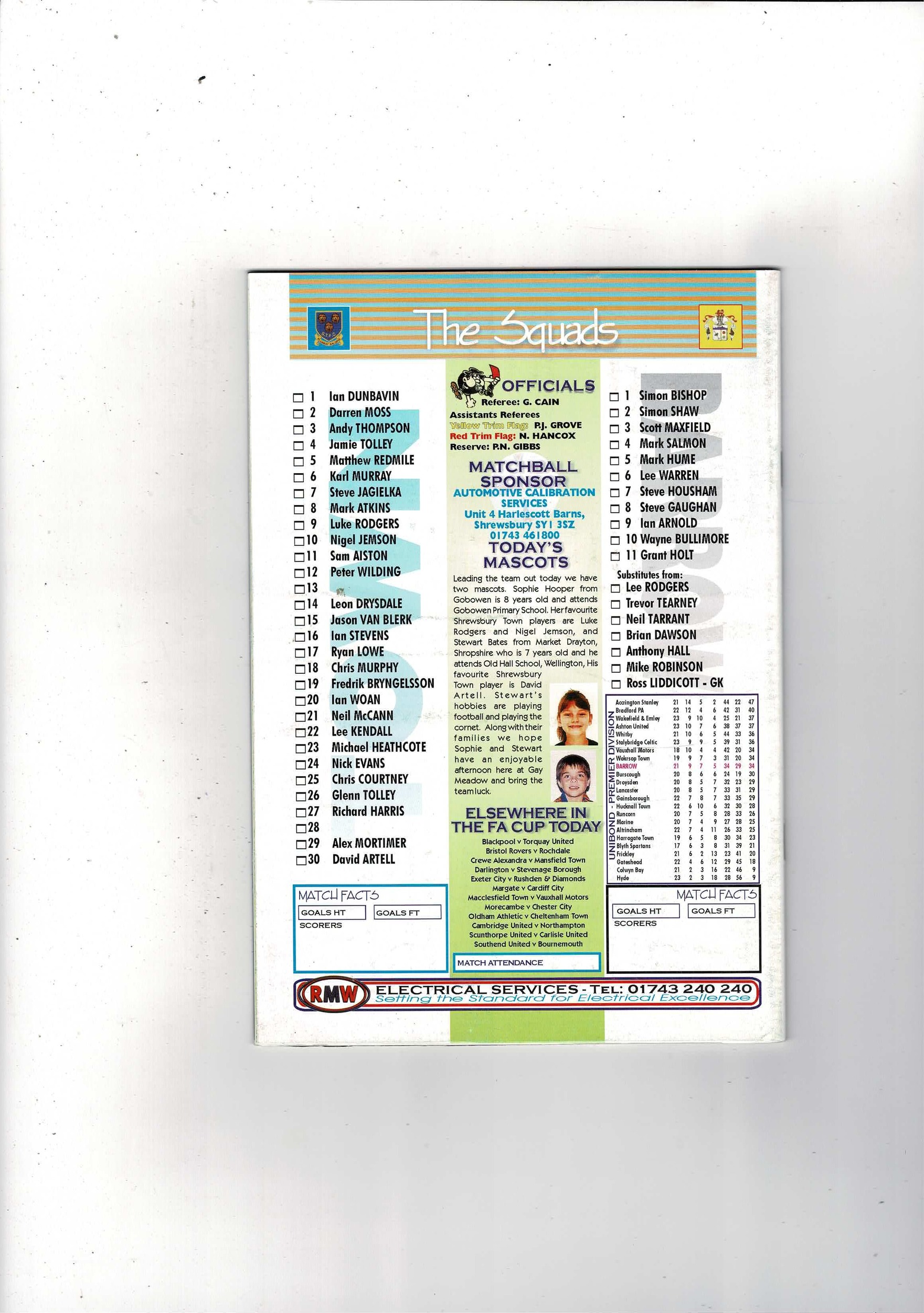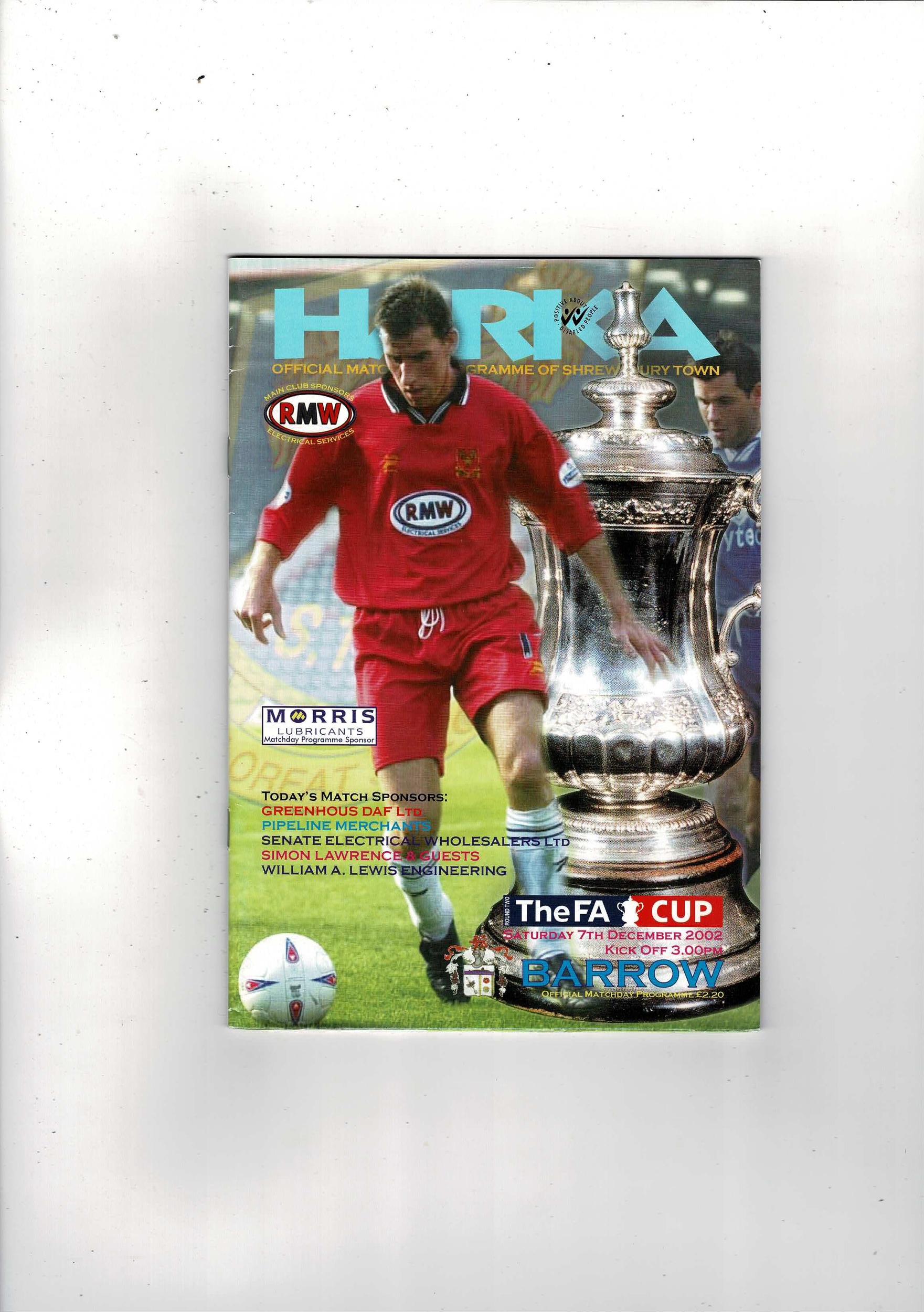 Shrewsbury Town v Barrow FA Cup Football Programme 2002/03