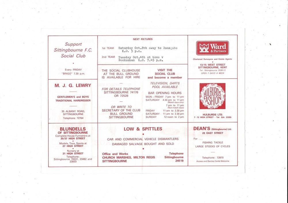 Sittingbourne v Three Bridges FA Cup Football Programme 1983/84