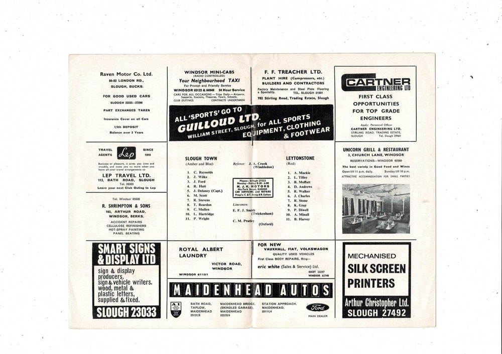 Slough Town v Leytonstone FA Cup Football Programme 1967/68