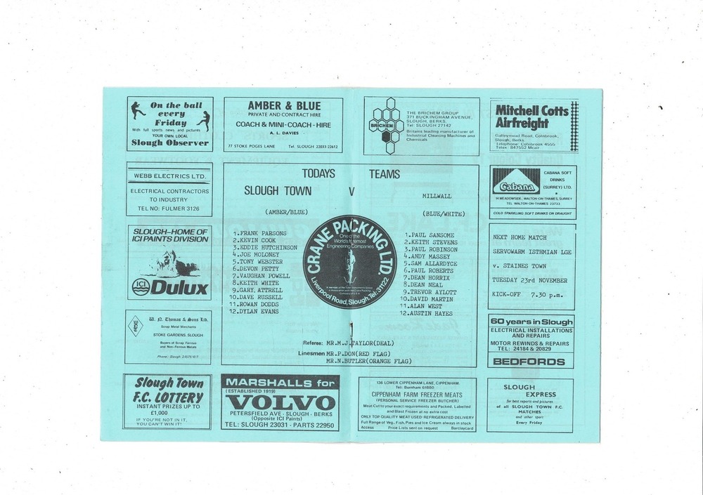 Slough Town v Millwall FA Cup Football Programme 1982/83