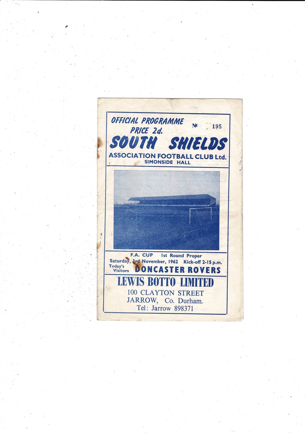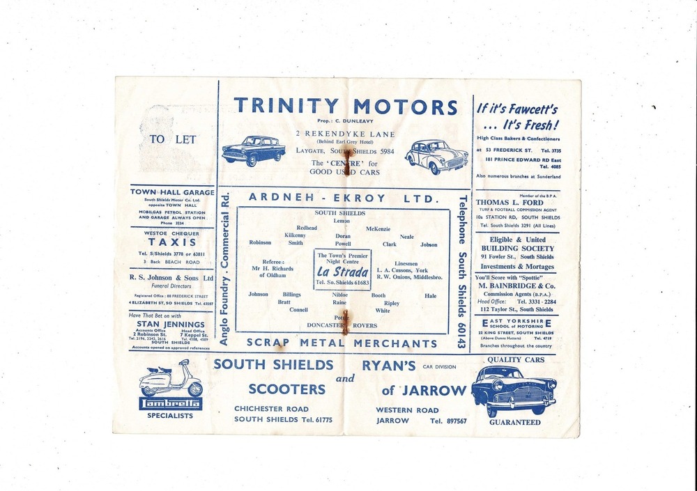 South Shields v Doncaster Rovers FA Cup Football Programme 1962/63