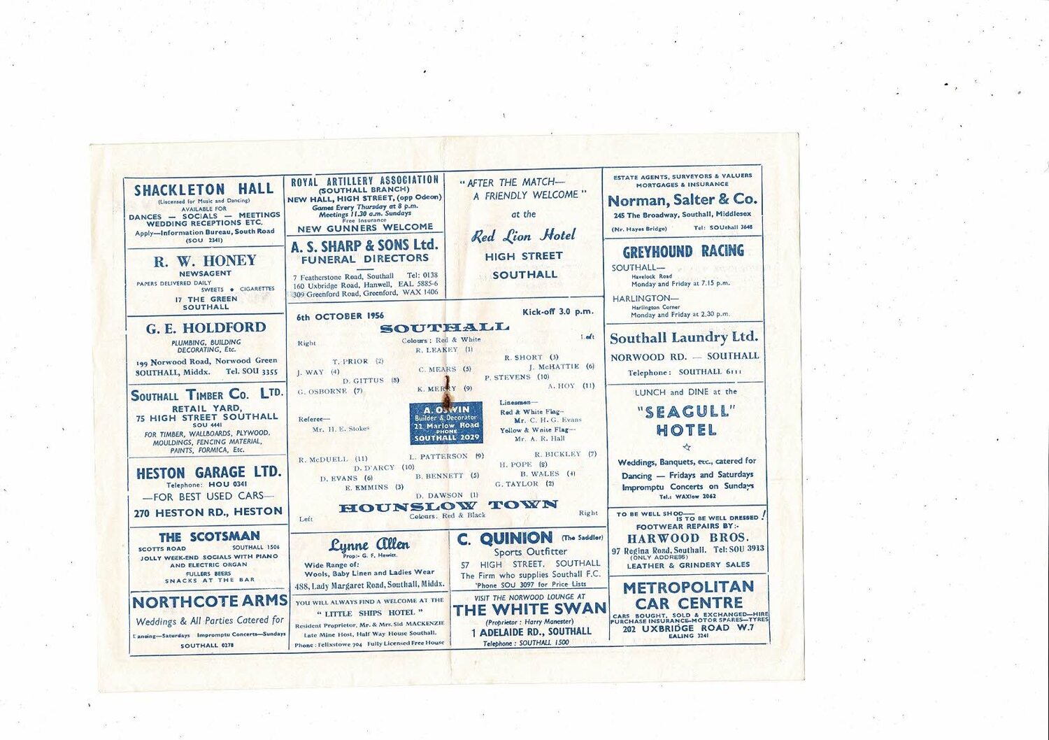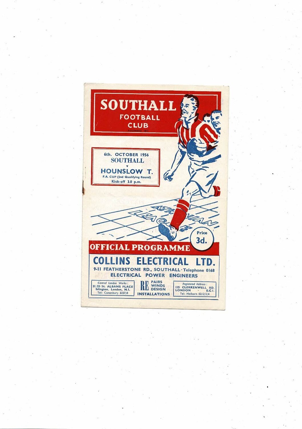 Southall v Hounslow Town FA Cup Football Programme 1956/57
