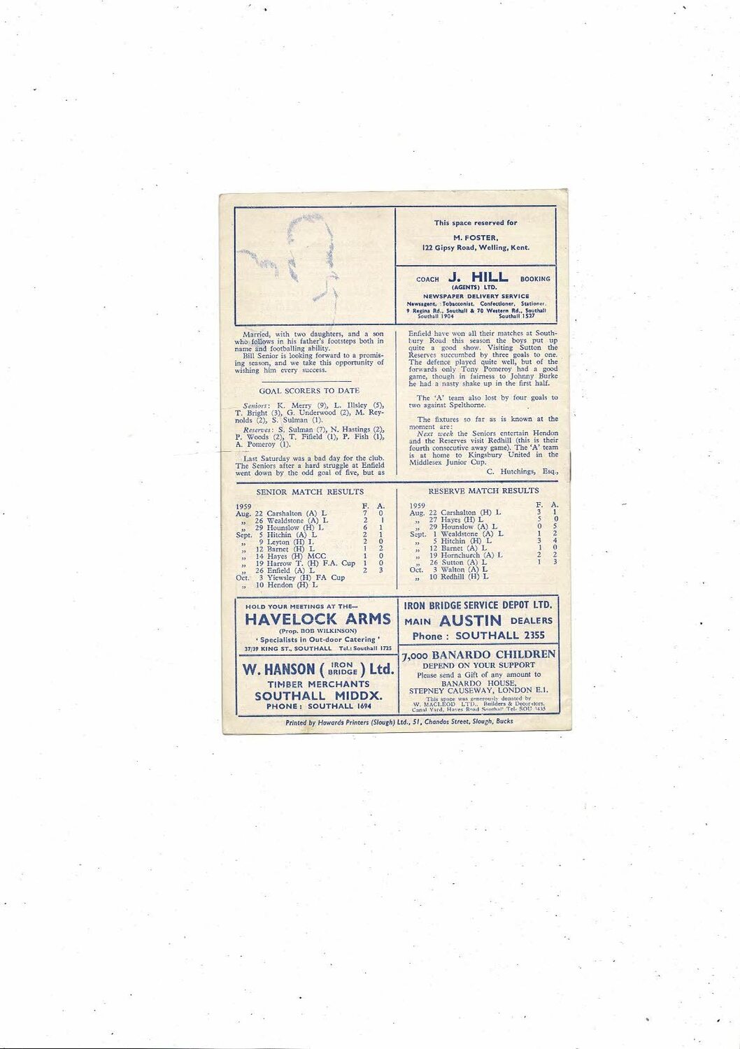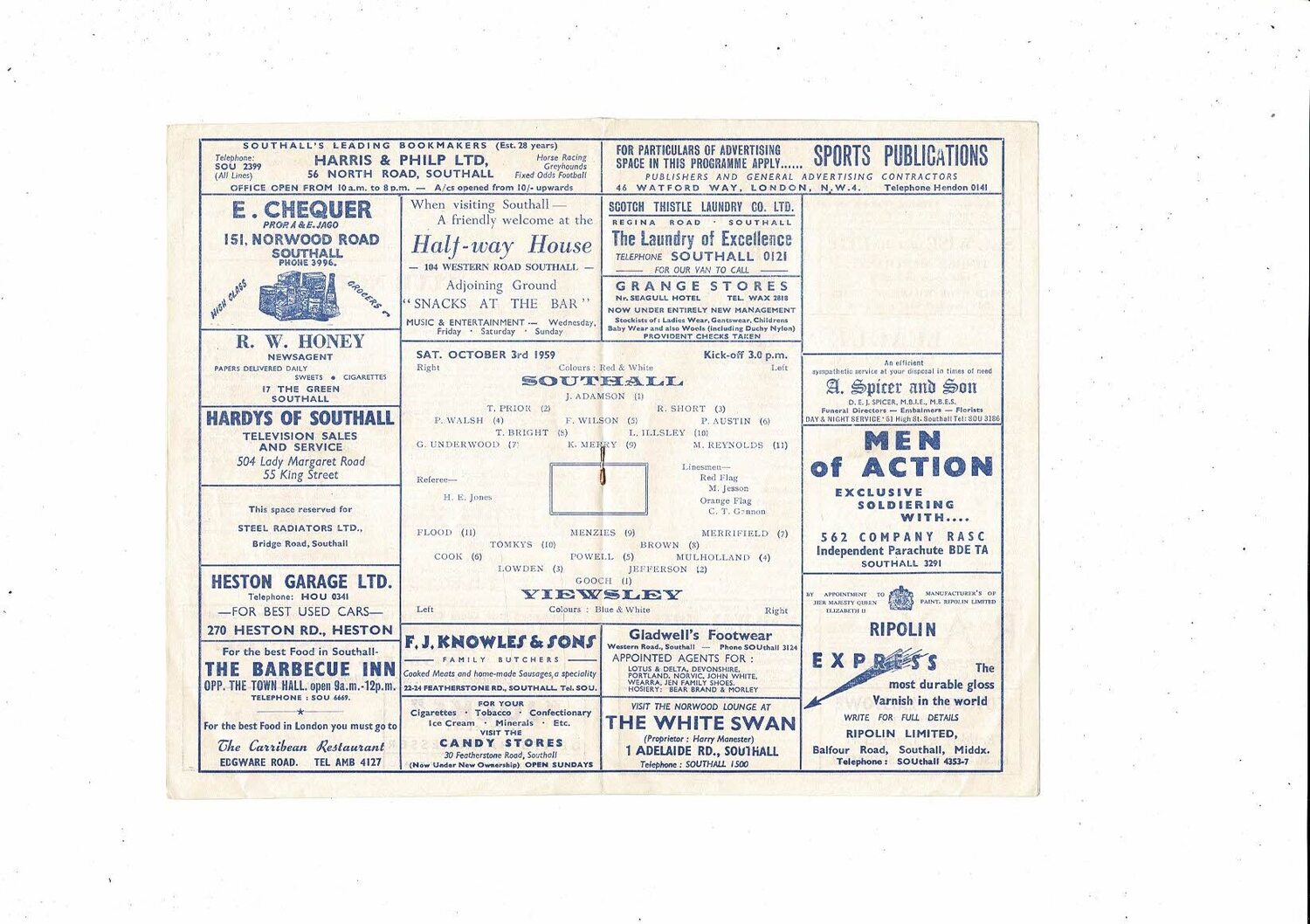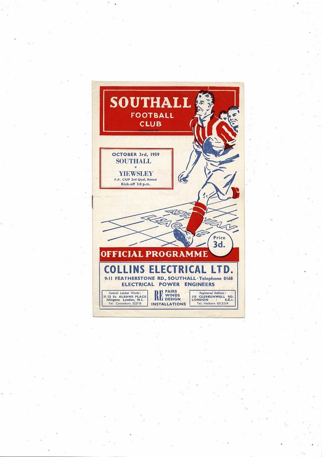Southall v Yiewsley FA Cup Football Programme 1959/60