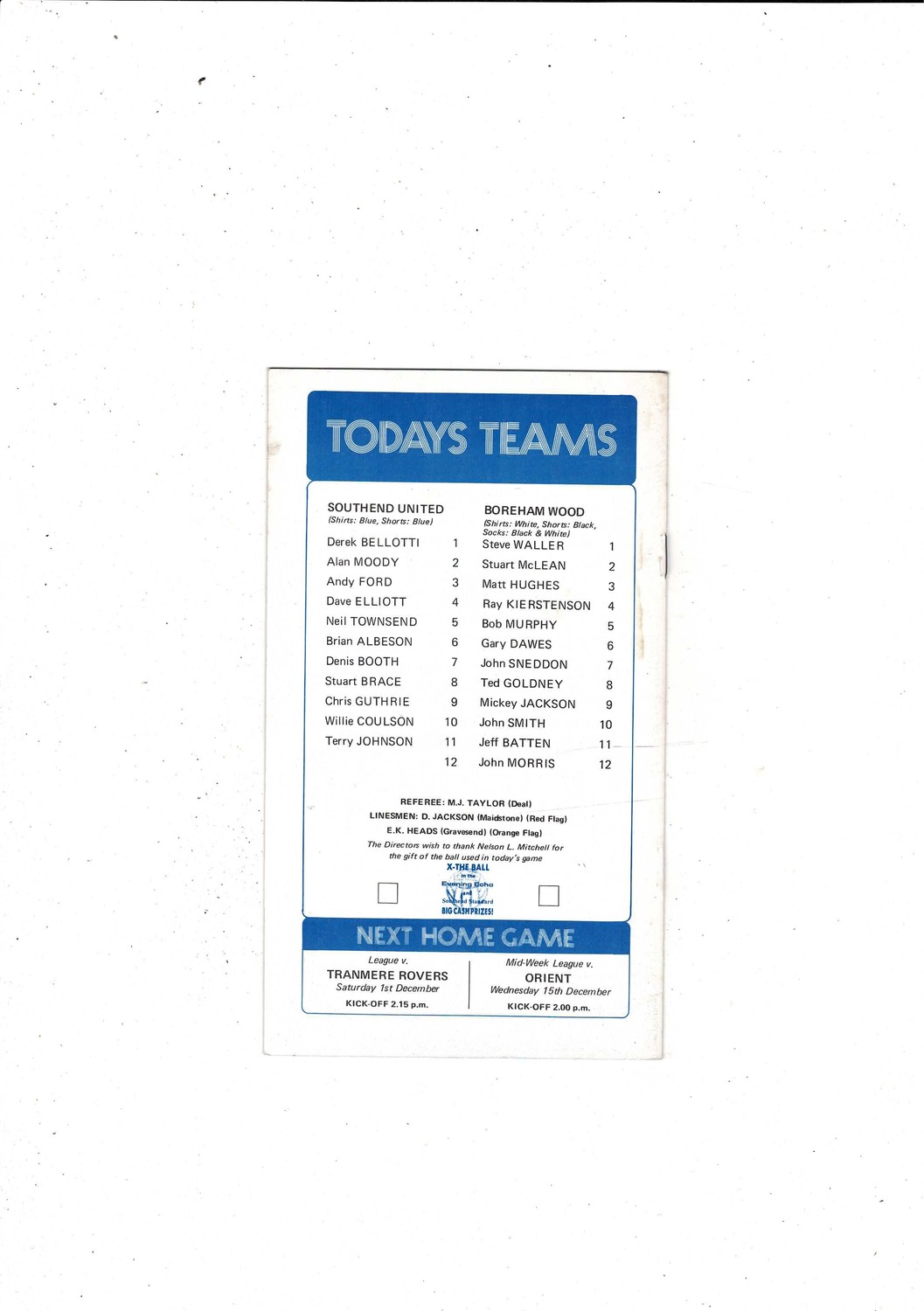 Southend United v Boreham Wood FA Cup Football Programme 1973/74